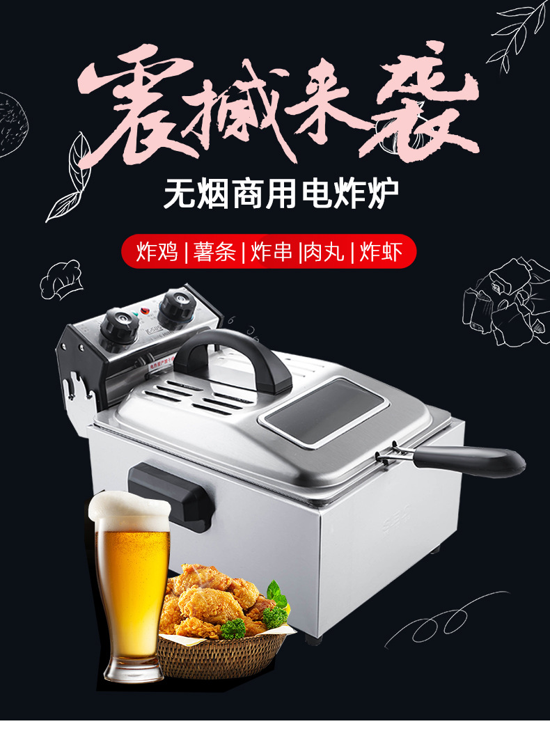 Nồi chiên điện hẹn giờ không khói nồi chiên thương mại xi-lanh đơn xi-lanh đôi nồi chiên gà rán cắt nhỏ Máy chiên khoai tây chiên xiên que