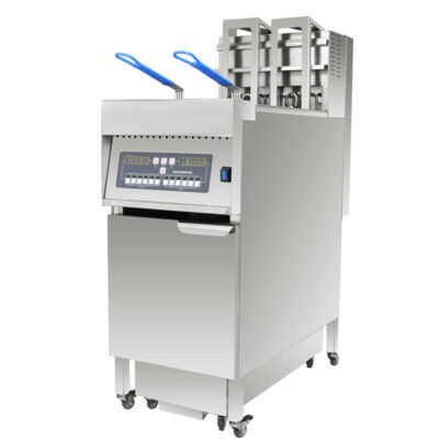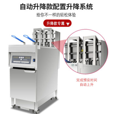 Nồi chiên điện thẳng đứng thương mại nâng hoàn toàn tự động với bộ lọc dầu Nồi chiên hai xi-lanh đơn Nồi chiên KFC Wallace