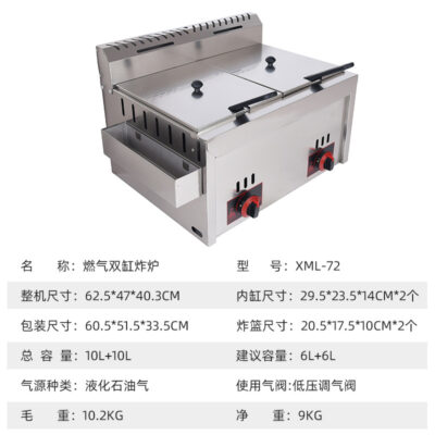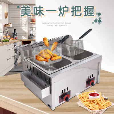 Nồi chiên gas thương mại xi lanh đôi nồi chiên đôi sàng chiên nồi chiên khoai tây chiên snack máy gian hàng gà rán lò