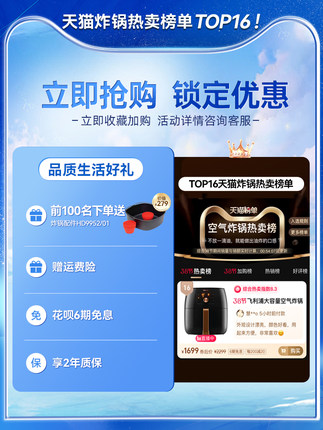 Nồi chiên không khí Philips nồi chiên điện mới hoàn toàn tự động thông minh đa chức năng công suất lớn HD9651