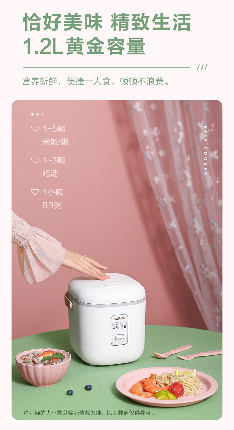 Nồi cơm điện Supor gia đình mini thông minh 1.2L ký túc xá Nồi cơm điện nhỏ đa năng 1 – 2 người