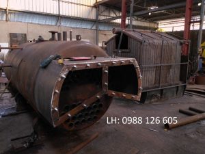 Nồi hơi gồm: Thân nồi hơi, ống khói, ghi lò hơi, sàn thao tác.