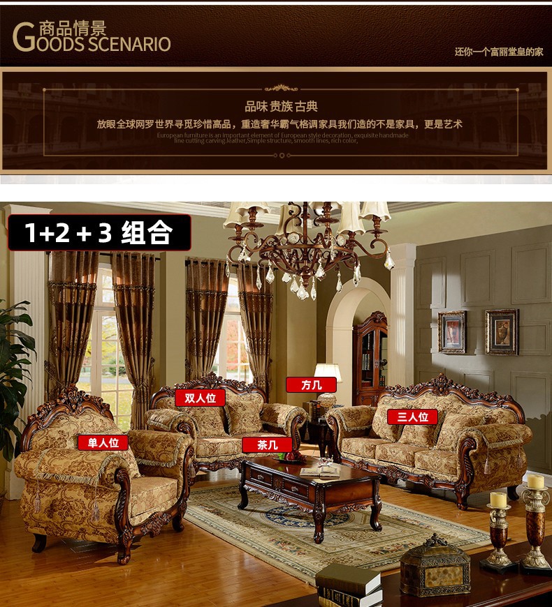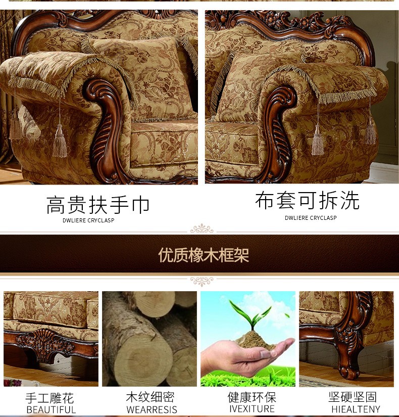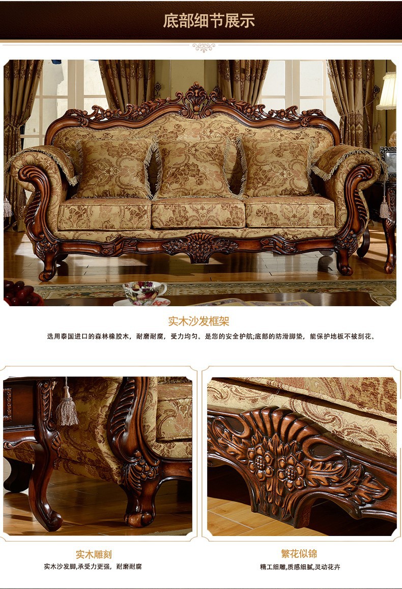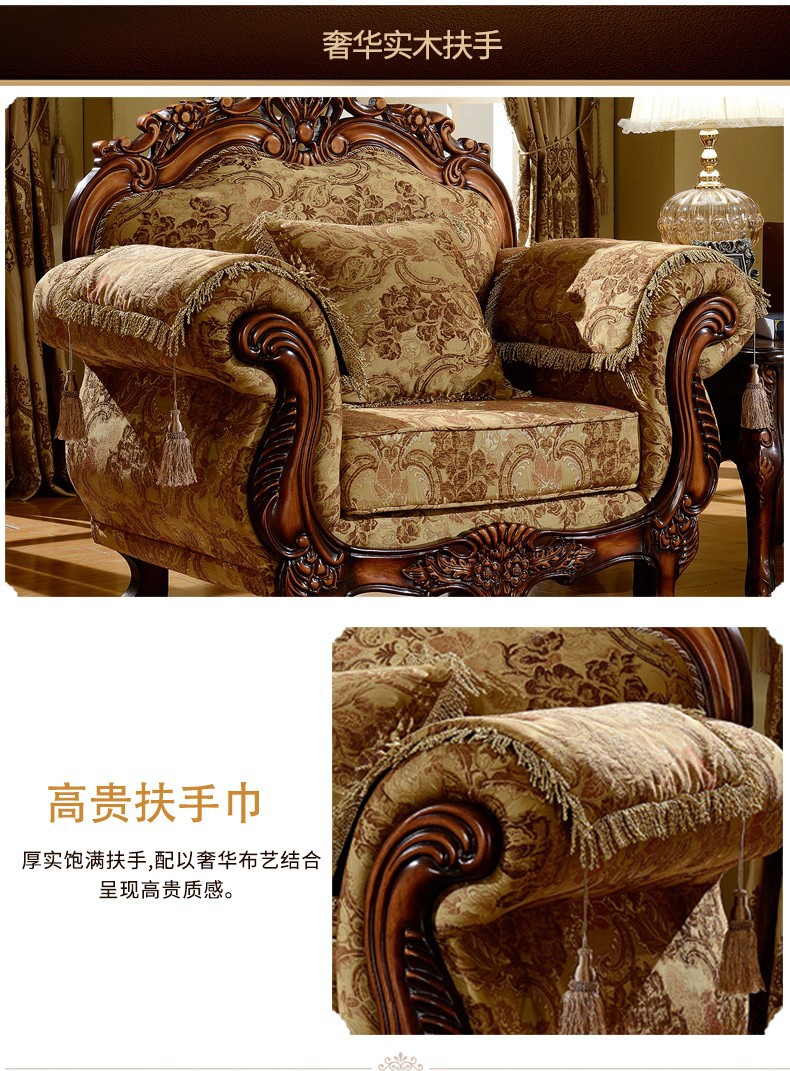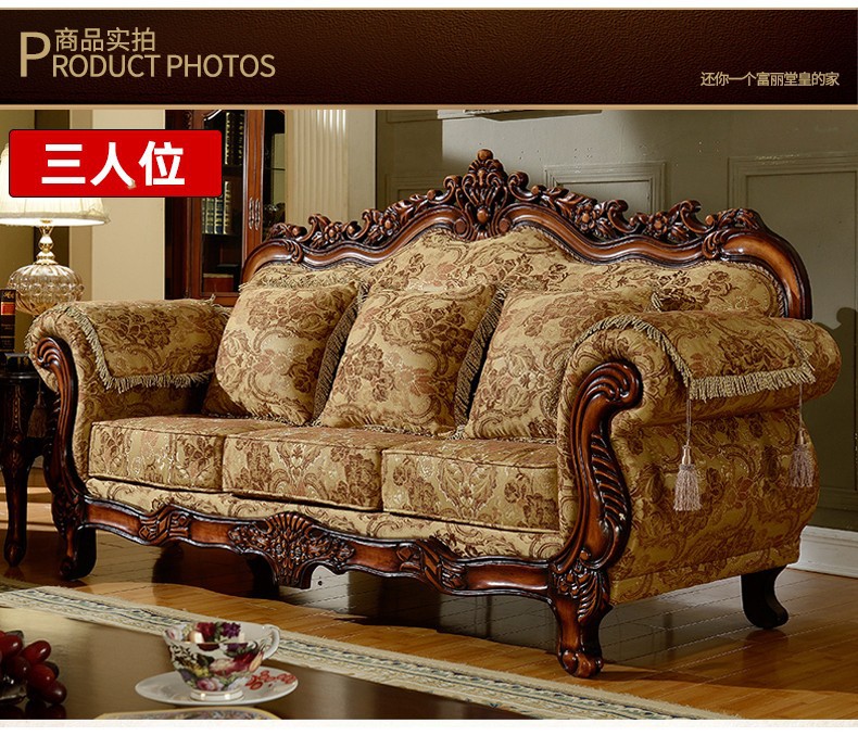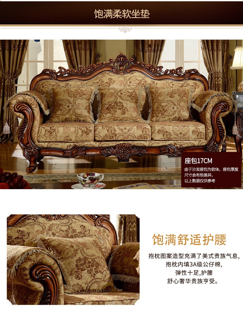 Nội Thất Cao Cấp Châu Âu Sofa Vải Phong Cách Châu Âu 123 Kết Hợp Phòng Khách Hình Chữ U Retro Mỹ Gỗ Chắc Chắn Chạm Khắc 3 Chỗ Nhỏ