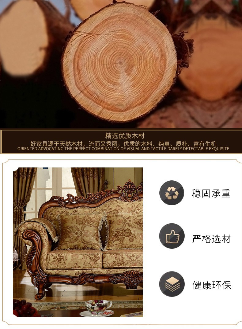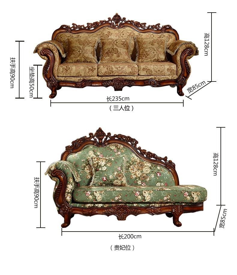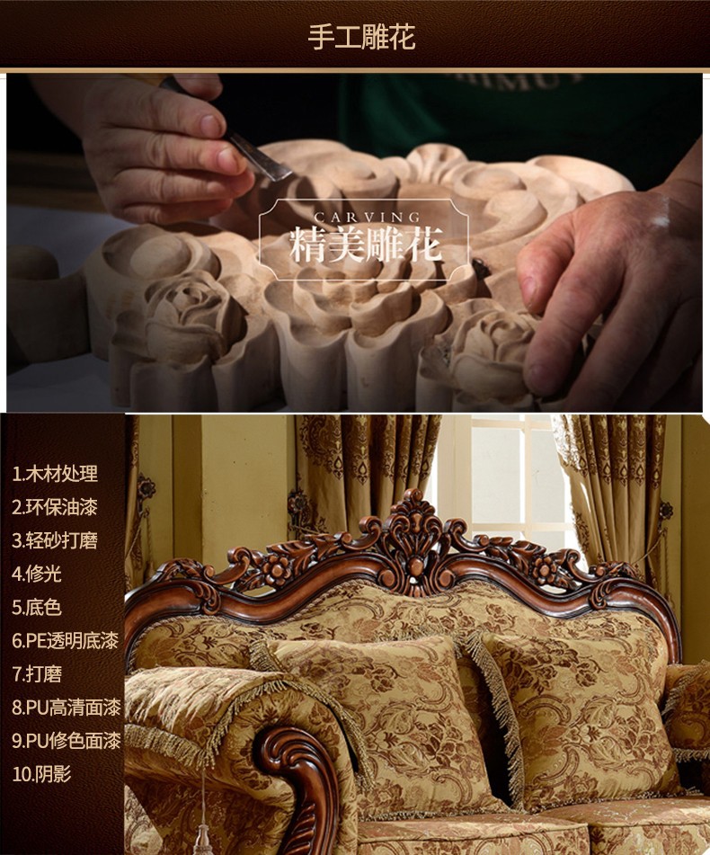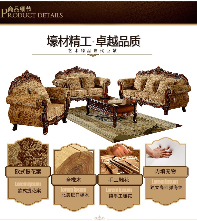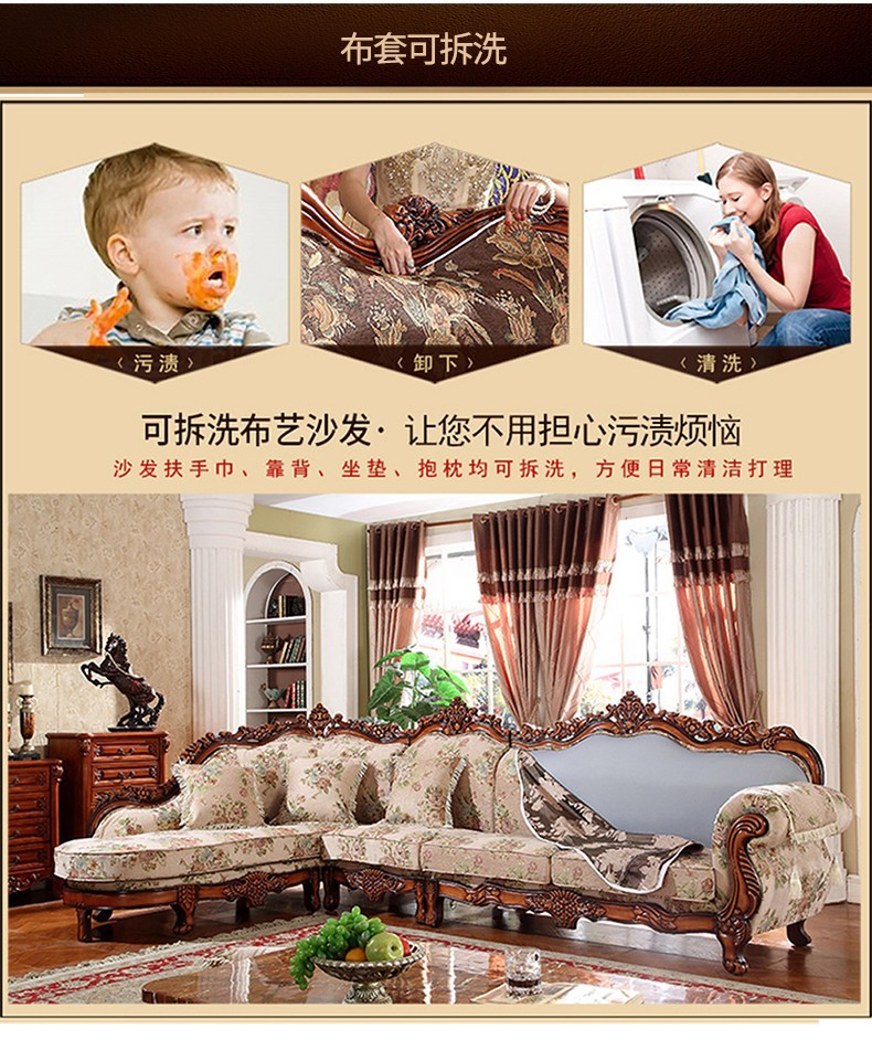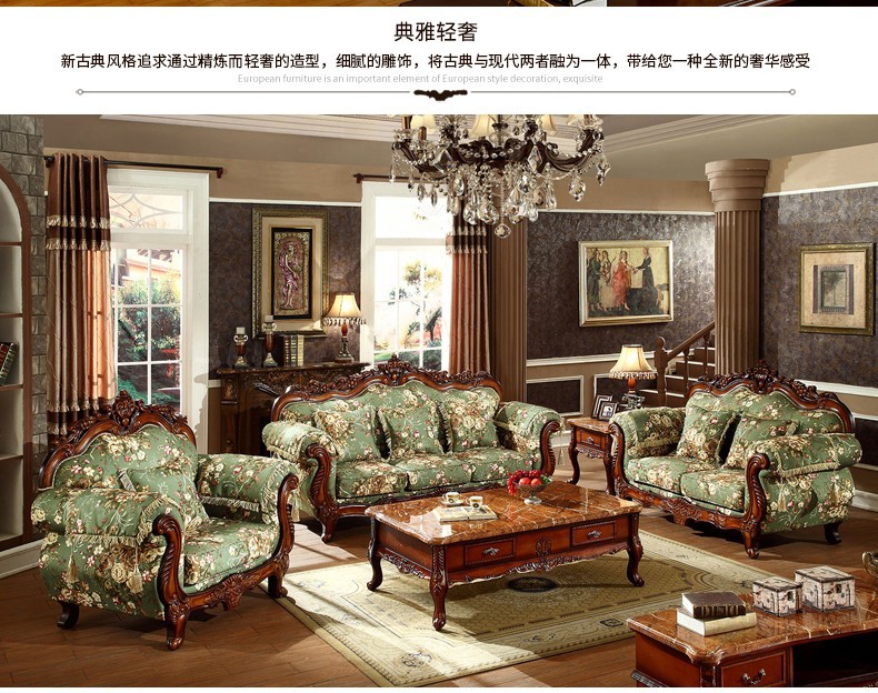 Nội Thất Cao Cấp Châu Âu Sofa Vải Phong Cách Châu Âu 123 Kết Hợp Phòng Khách Hình Chữ U Retro Mỹ Gỗ Chắc Chắn Chạm Khắc 3 Chỗ Nhỏ