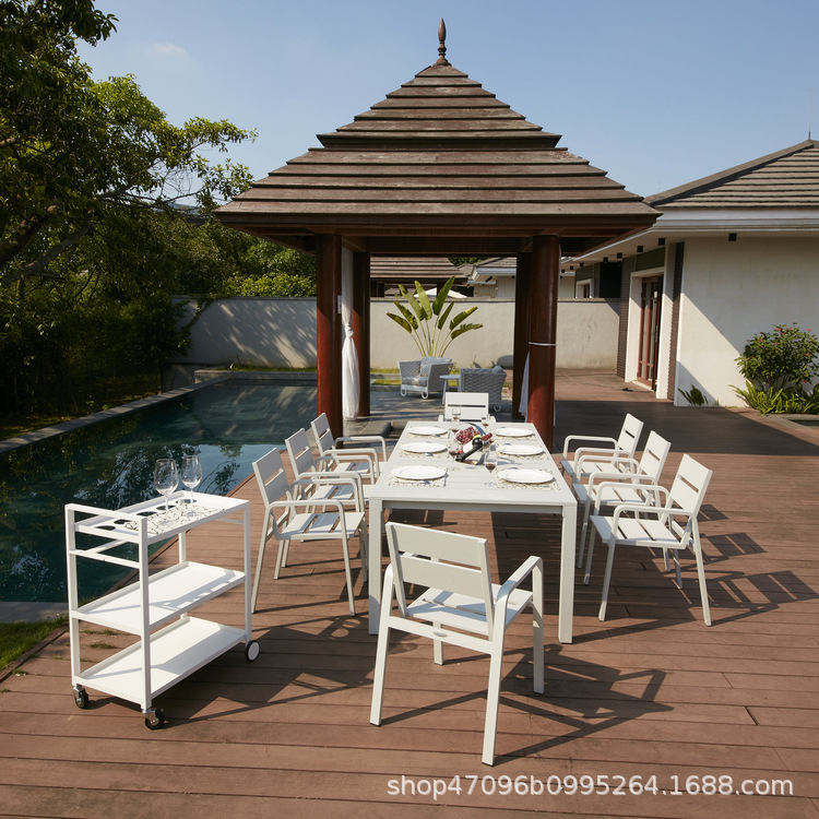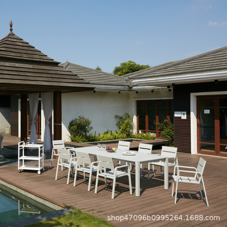 Nội thất Danduo Bộ bàn ăn hợp kim nhôm chữ nhật ngoài trời Fontainebleau Nội thất sân vườn Biệt thự Bàn ghế sân vườn