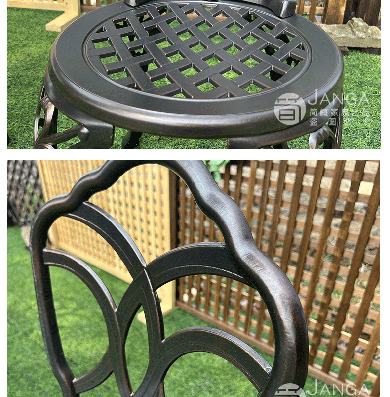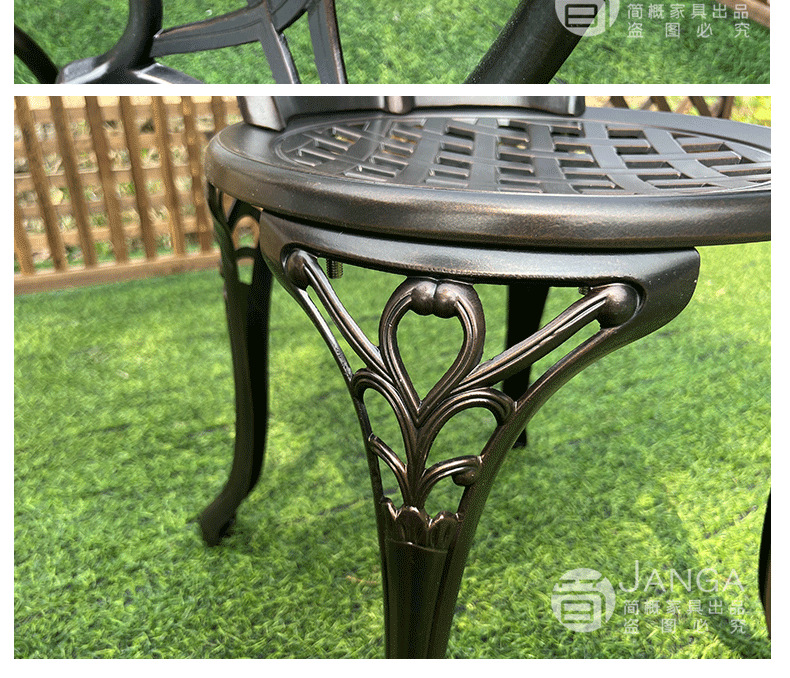 Nội thất giải trí ngoài trời Sân vườn Ban công Sân thượng Bàn ghế kim loại Công viên ngoài trời Cộng đồng Nhôm đúc Một bàn hai ghế được thiết kế để tạo điểm nhấn cho khu vực sân vườn, ban công hoặc không gian ngoài trời.