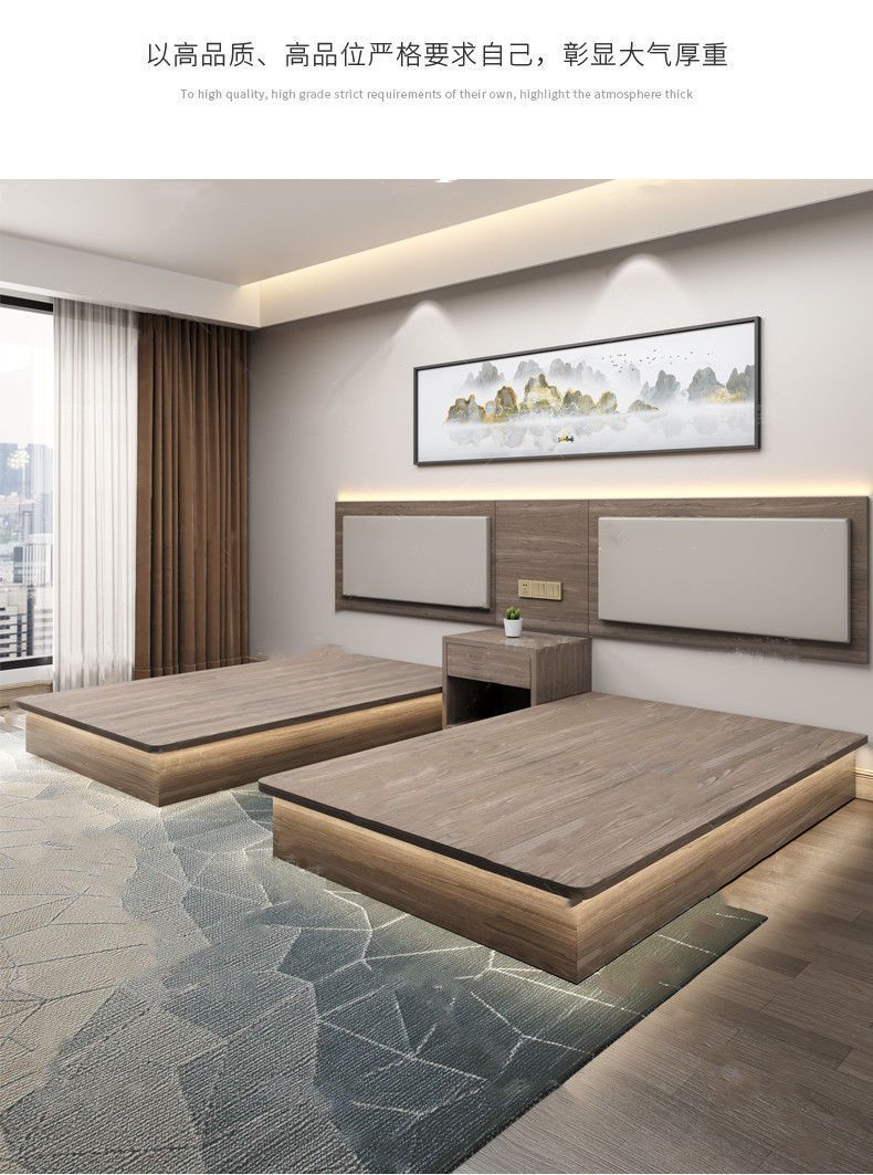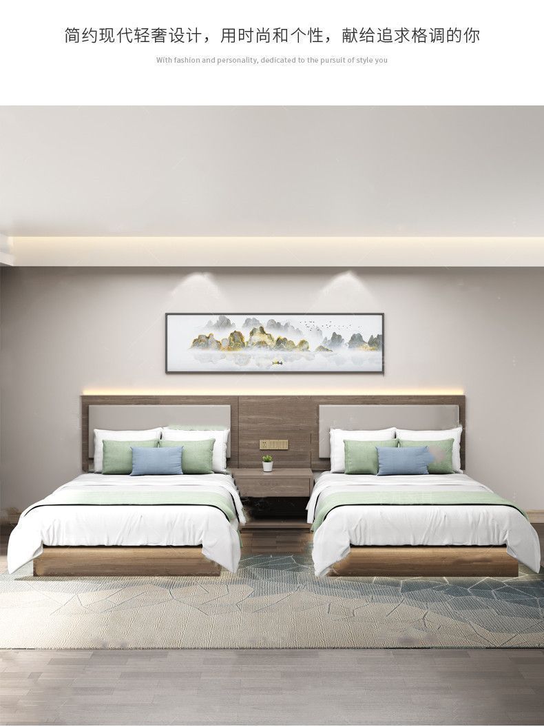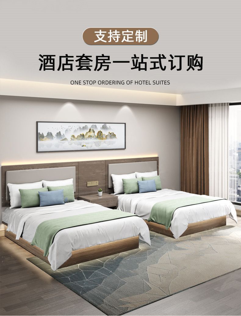 Nội thất khách sạn phòng tiêu chuẩn trọn bộ giường khách sạn giường đôi đơn giản hiện đại căn hộ giường ngủ cho thuê phòng ăn sáng