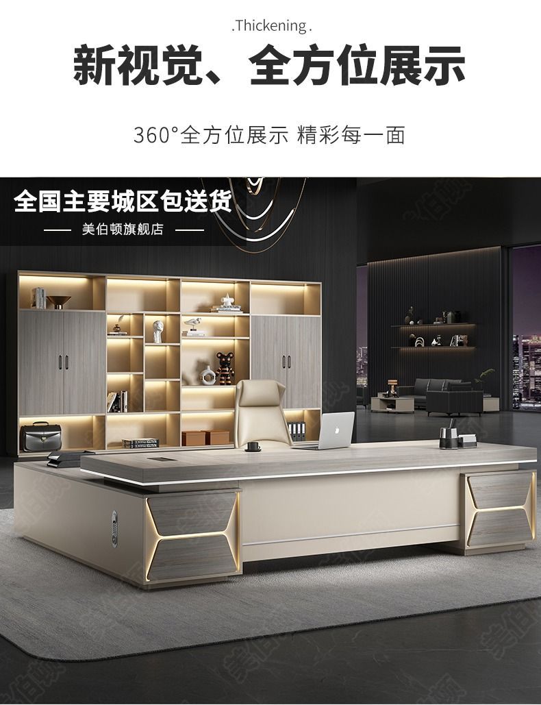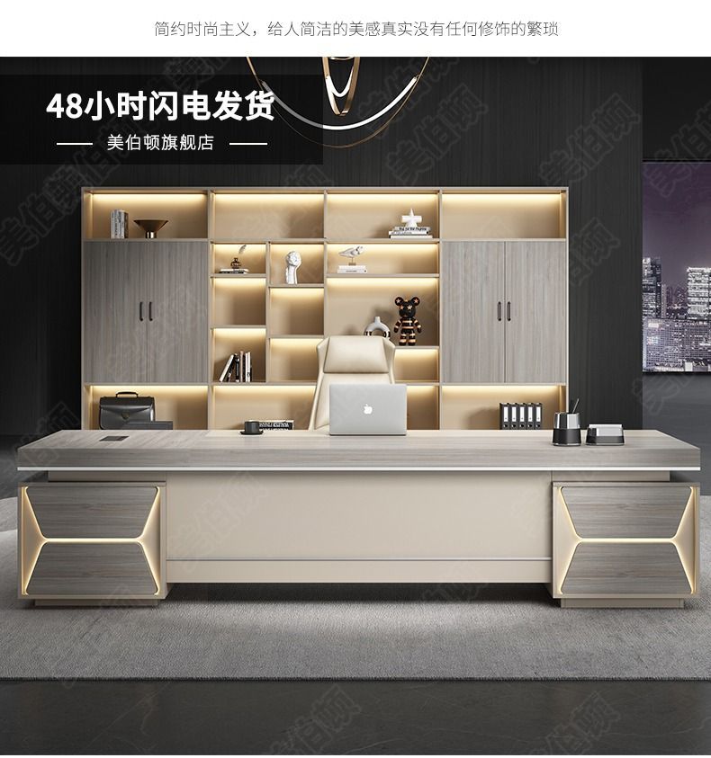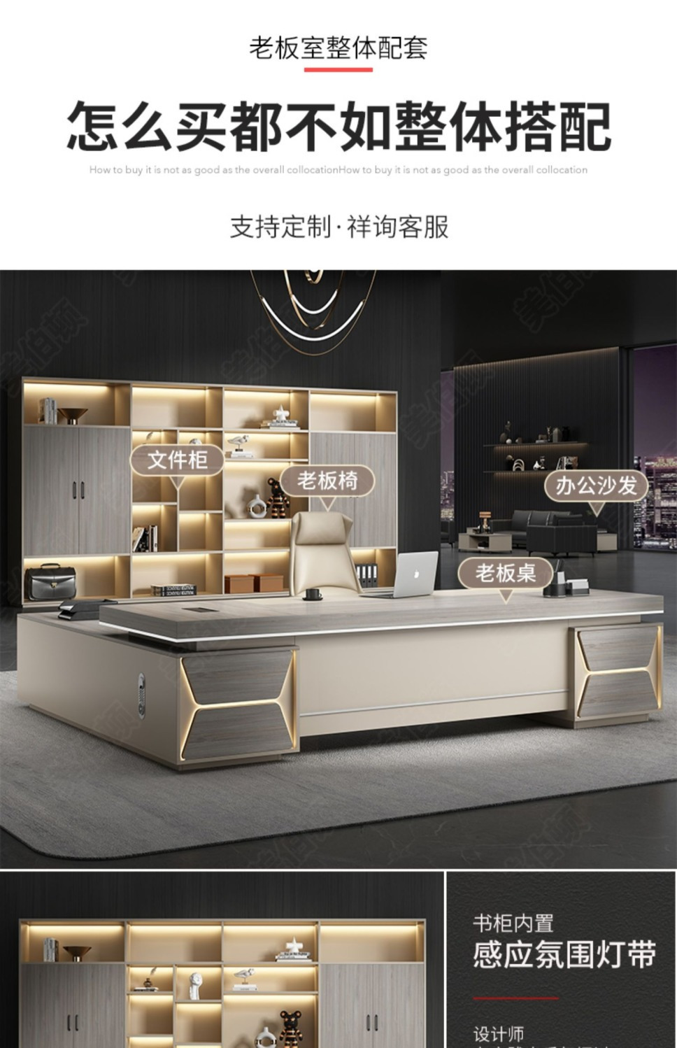 Nội thất Phật Sơn Bàn làm việc Boss Ghế văn phòng Kết hợp Đơn giản Hiện đại Bàn quản lý Bàn Chủ tịch Tủ đôi Ánh sáng Bàn điều hành sang trọng