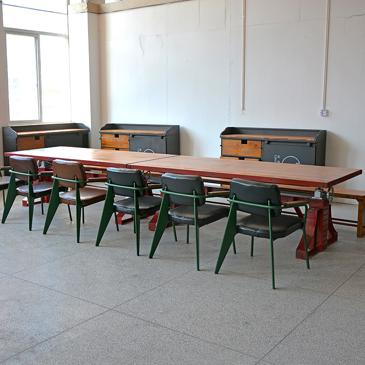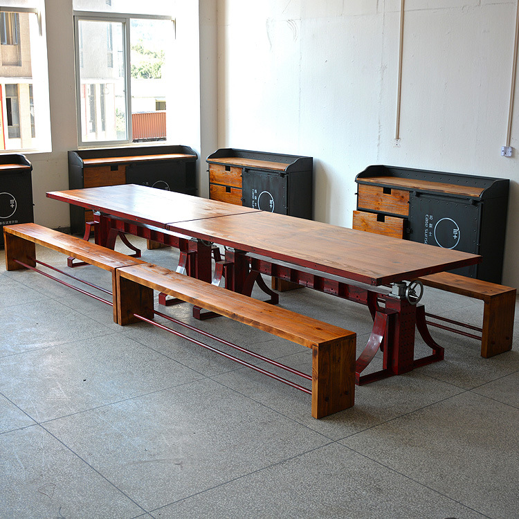 Nội thất phong cách công nghiệp cổ điển sắt rèn gỗ cứng nâng bàn ăn và ghế quầy bar bàn cà phê bàn ăn và ghế băng ghế dự bị ghế tựa