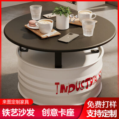 Nội thất phong cách công nghiệp thẻ ghế sofa sắt rèn sofa sáng tạo thùng dầu bàn cà phê thanh retro quán trà sữa bộ bàn ghế