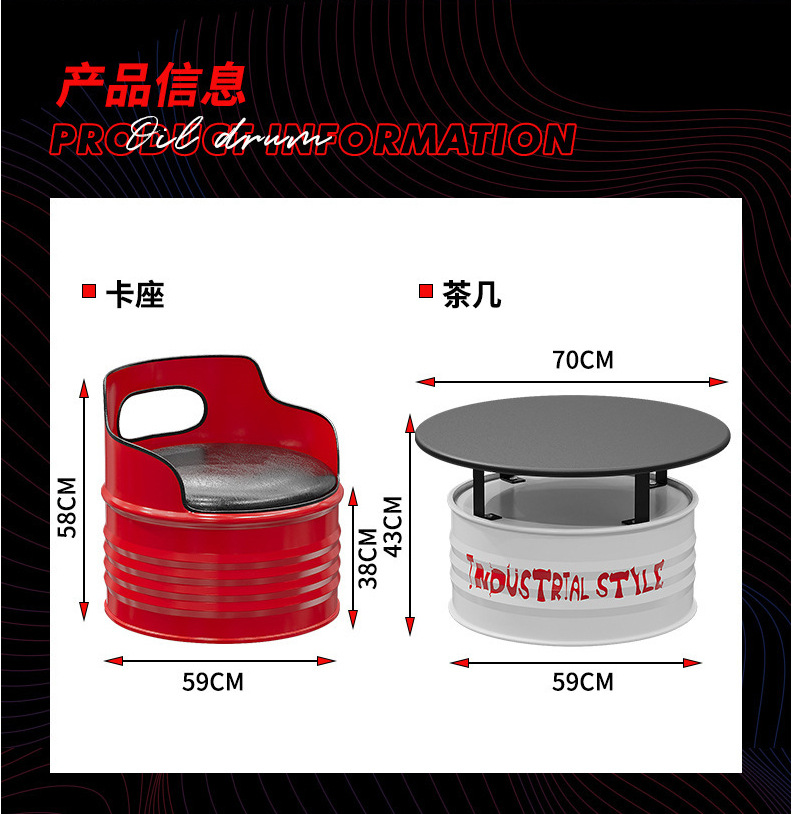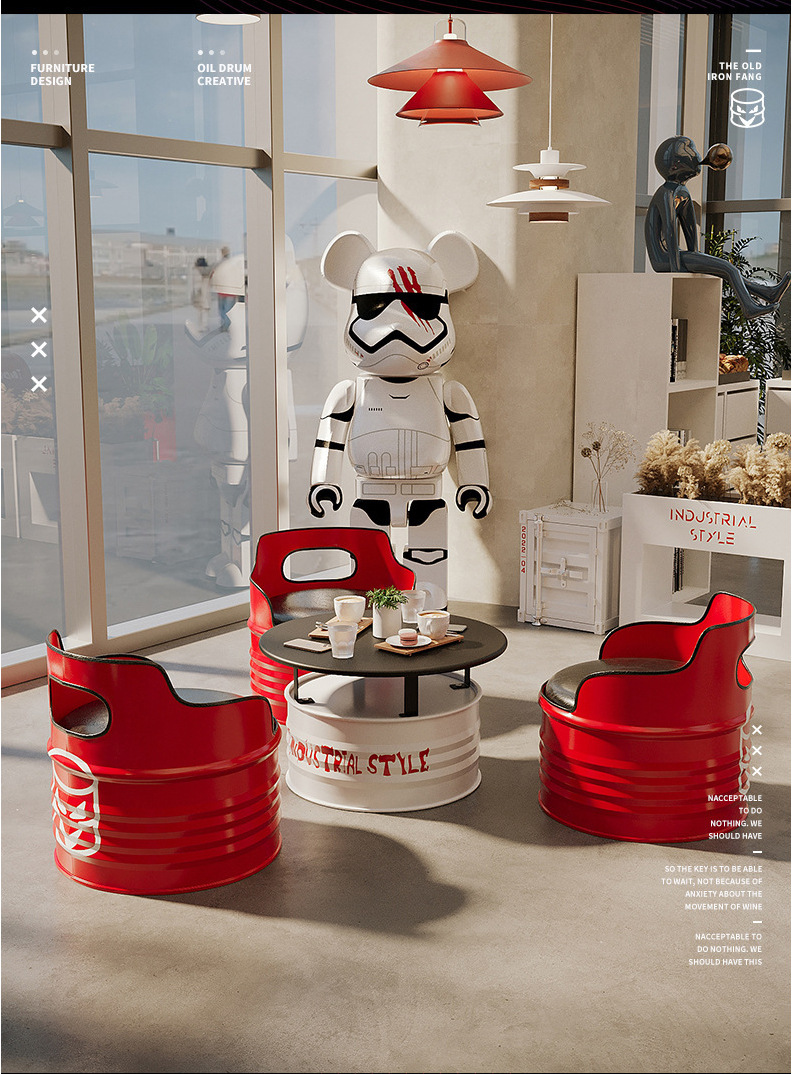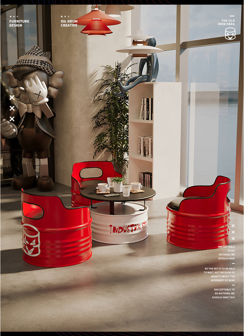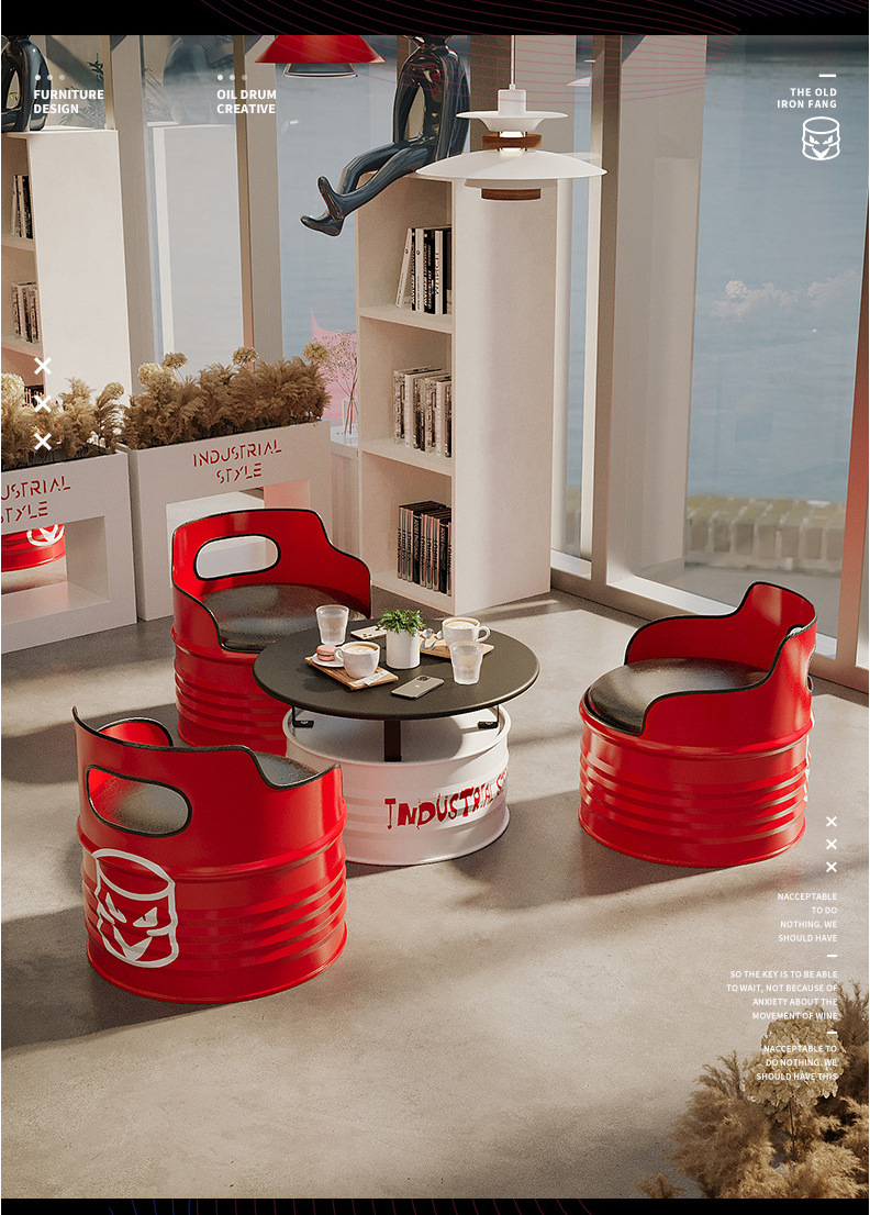 Nội thất phong cách công nghiệp thẻ ghế sofa sắt rèn sofa sáng tạo thùng dầu bàn cà phê thanh retro quán trà sữa bộ bàn ghế
