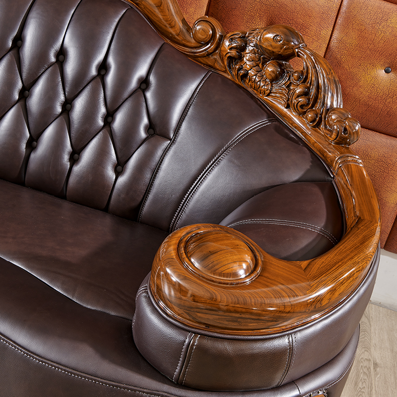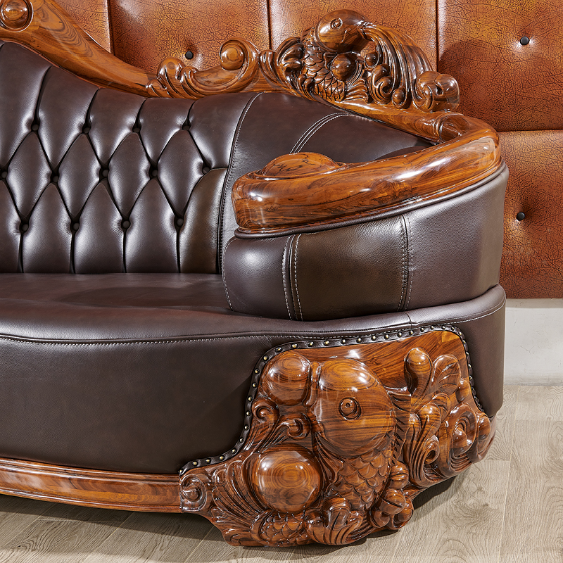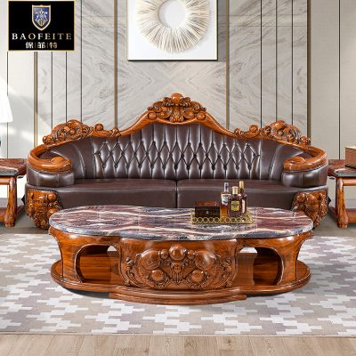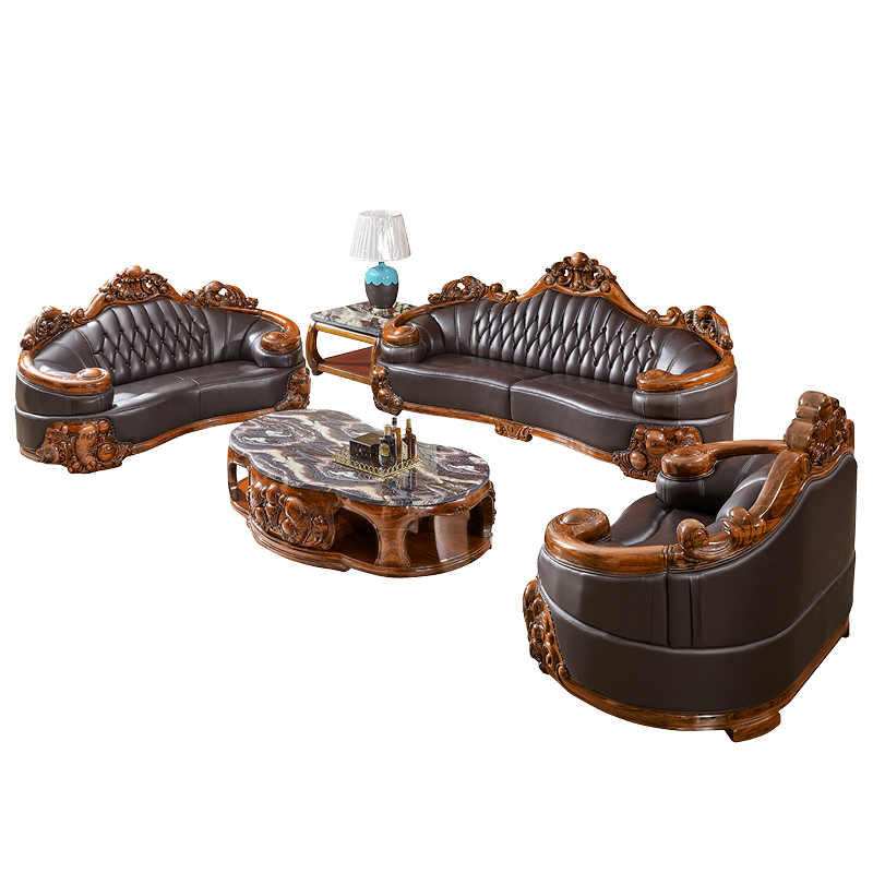 Nội thất phòng khách cao cấp phong cách Châu Âu biệt thự da mun gỗ mun lớp da bò sofa bàn cafe tủ tivi kết hợp hoàn chỉnh