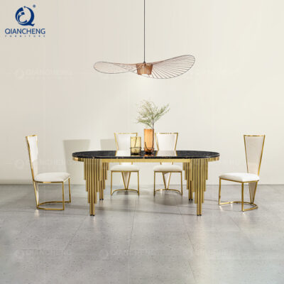 Nội thất Qianchen bán buôn bàn ăn bằng đá cẩm thạch mới bàn ăn hình chữ nhật nhẹ sang trọng bàn ăn inox cao cấp bàn ăn kết hợp