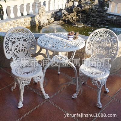 Nội thất sân vườn bằng nhôm đúc ngoài trời bằng nhôm rèn chống rỉ và chống nắng Bàn sắt rèn sân ngoài trời Bàn ghế nhỏ nội thất giải trí
