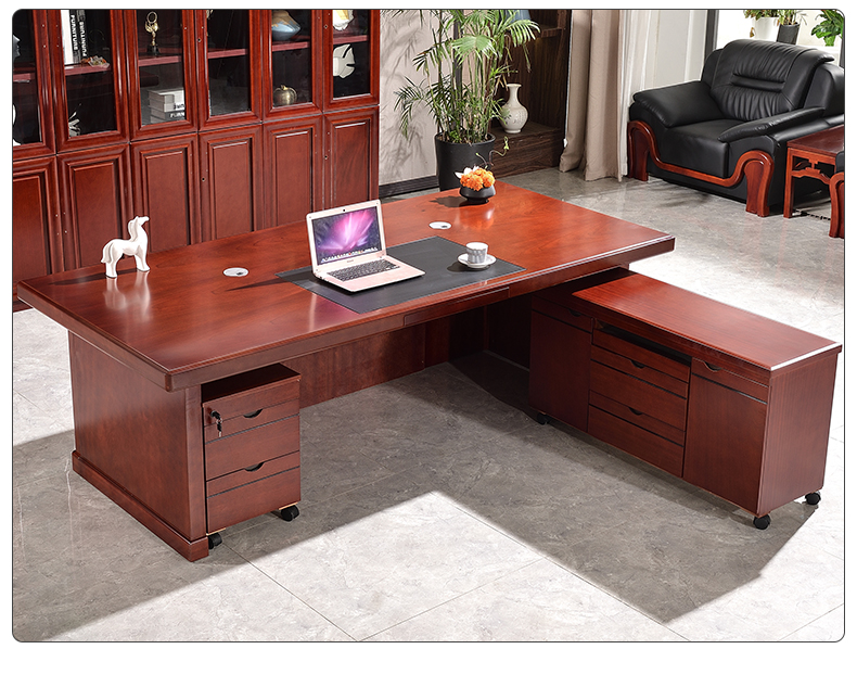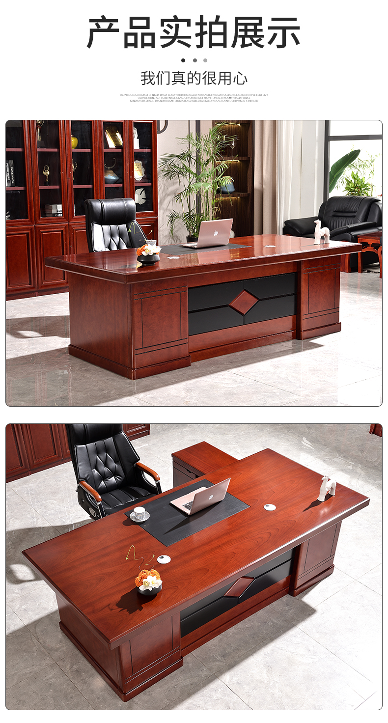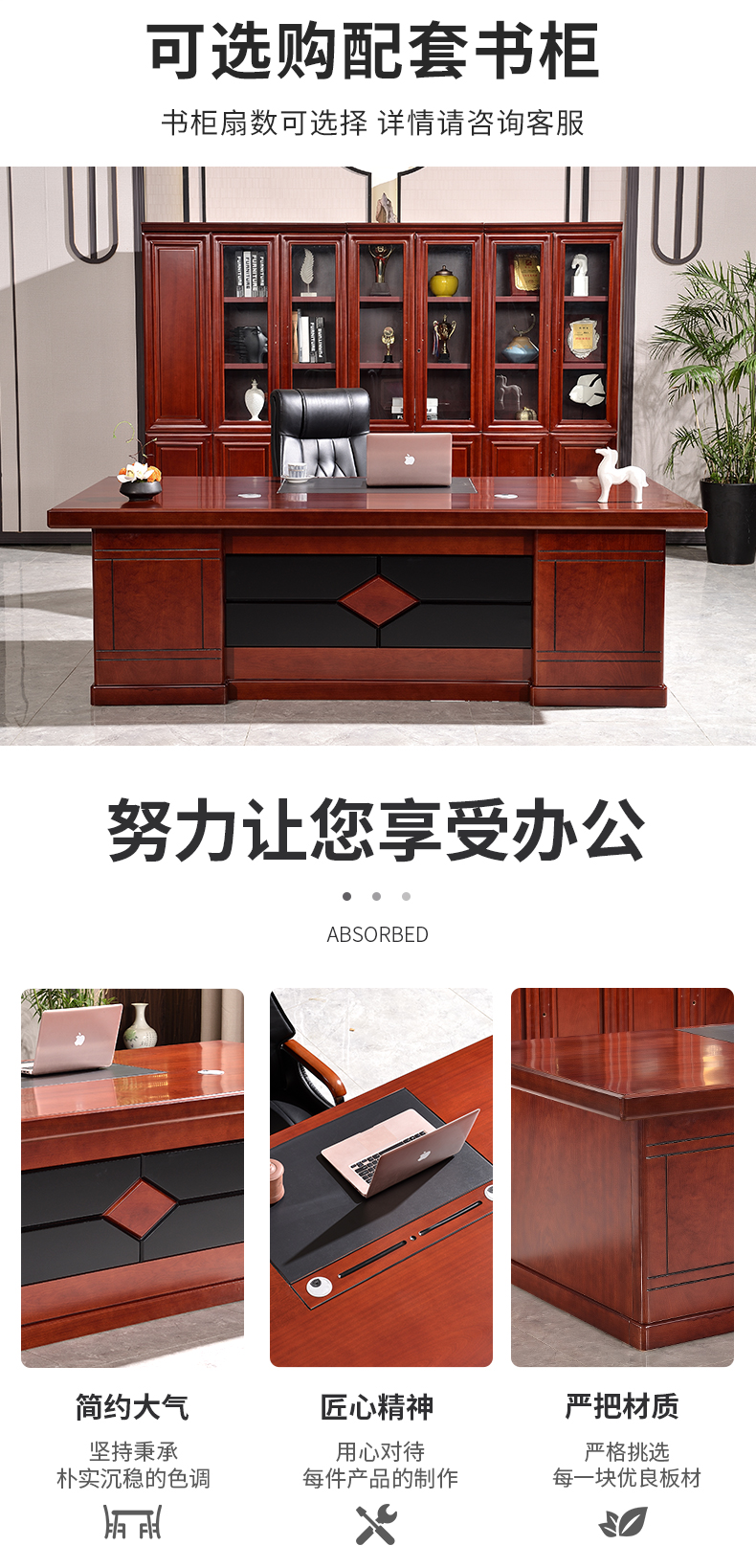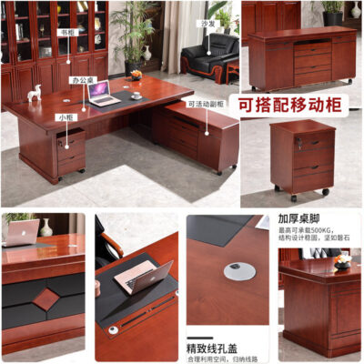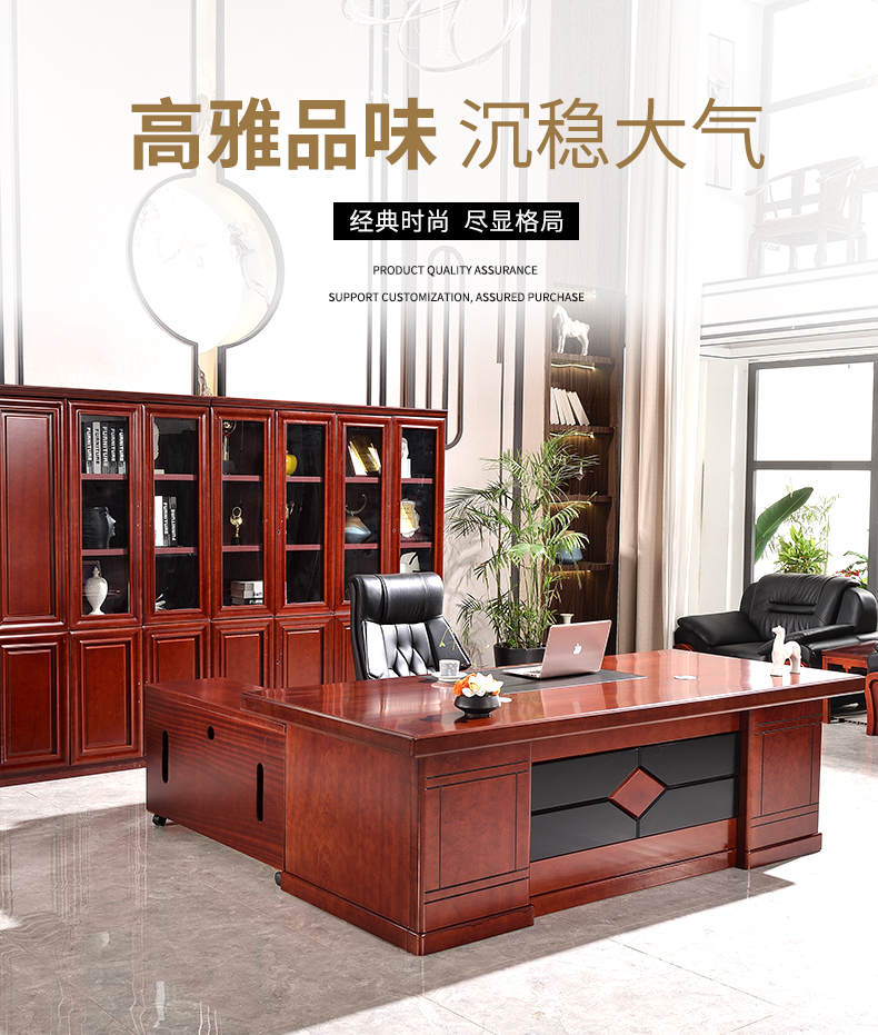 Nội thất văn phòng Bàn điều hành Bàn làm việc của ông chủ Phong cách Trung Quốc mới Bàn chủ tịch Gỗ nguyên khối Da Sơn Quản lý Giám sát kết hợp bàn và ghế