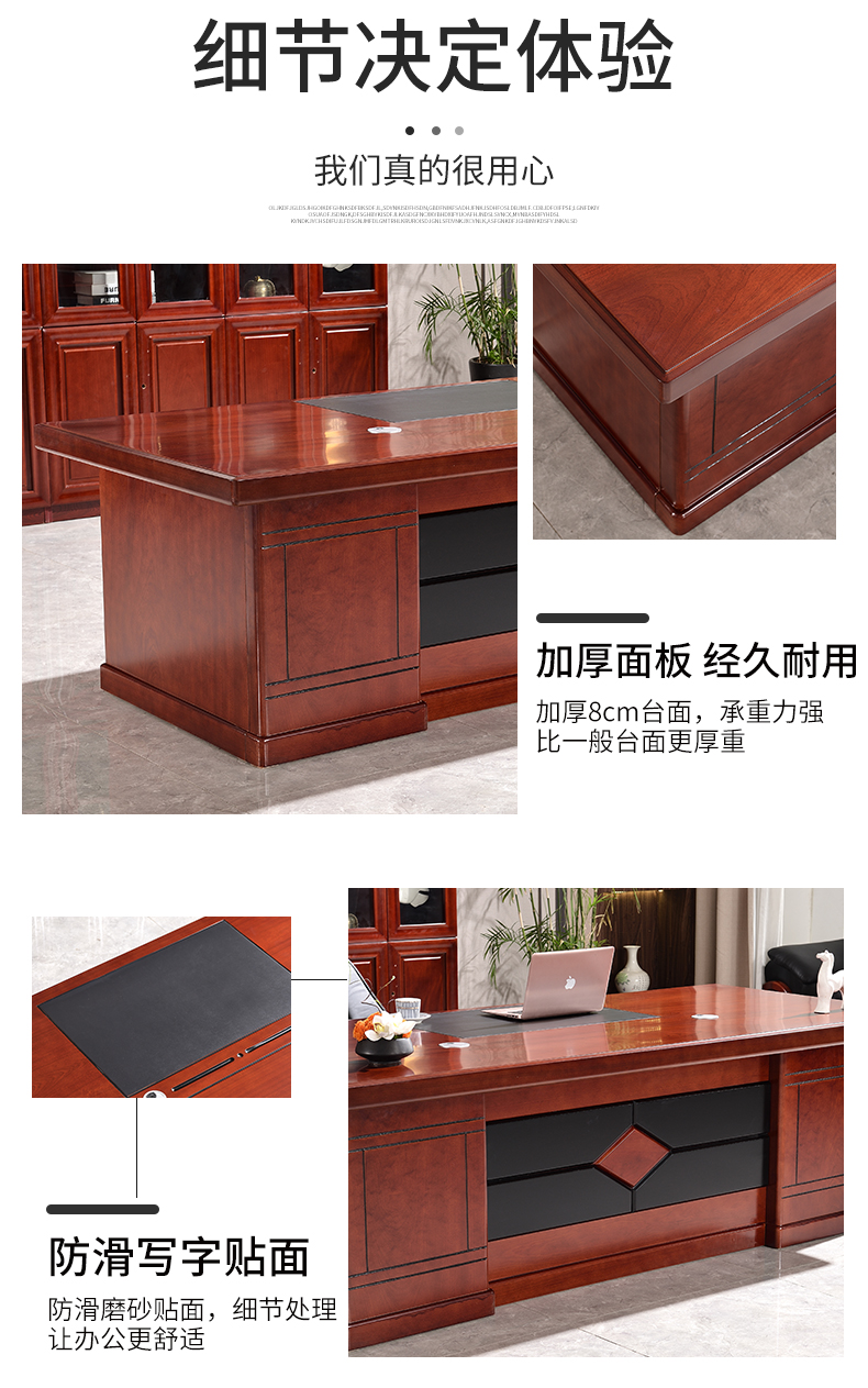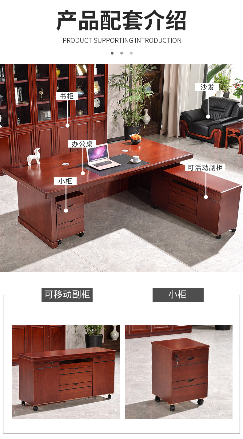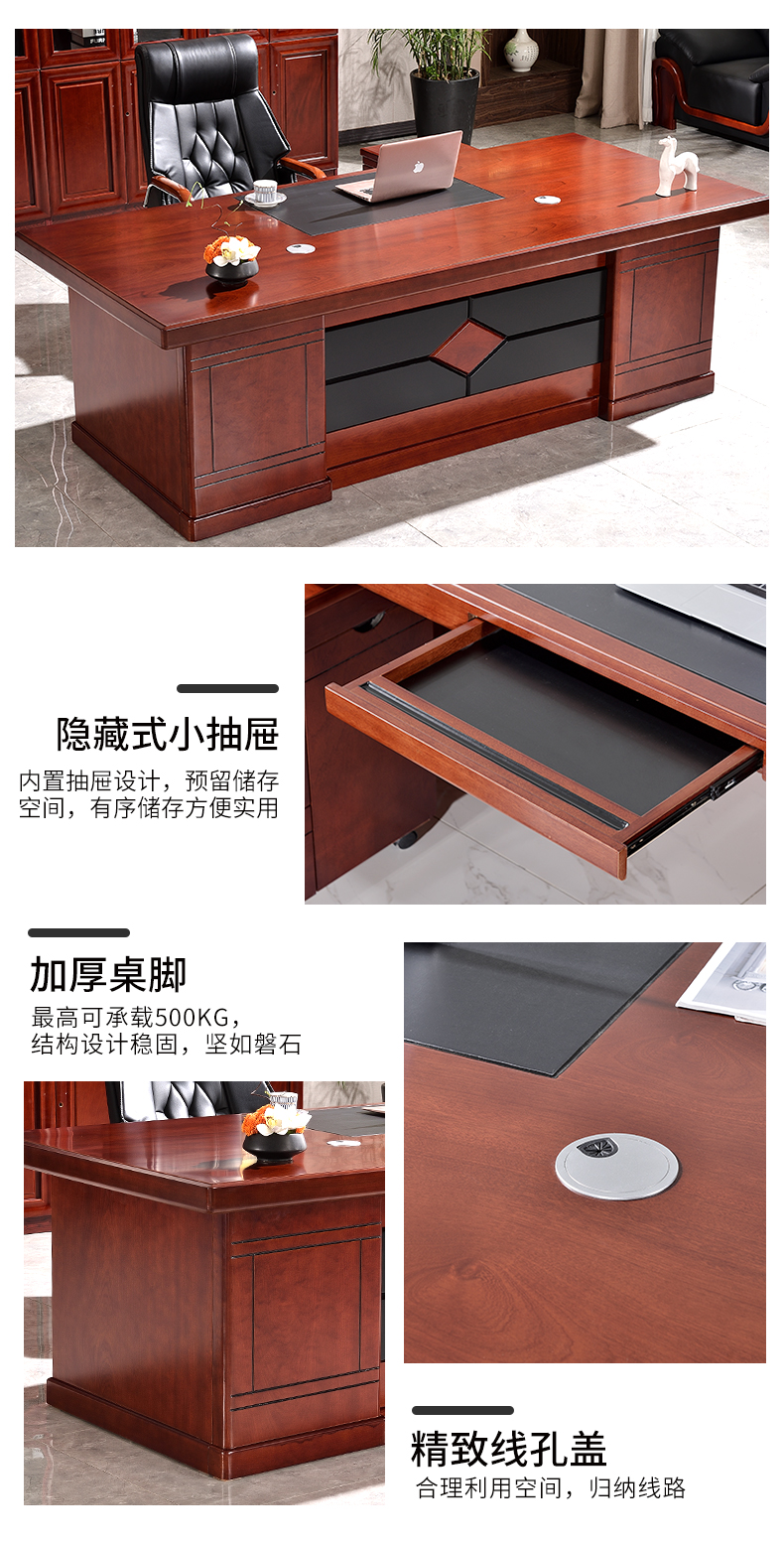 Nội thất văn phòng Bàn điều hành Bàn làm việc của ông chủ Phong cách Trung Quốc mới Bàn chủ tịch Gỗ nguyên khối Da Sơn Quản lý Giám sát kết hợp bàn và ghế