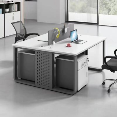 Nội thất văn phòng bàn giám đốc màn hình đơn giản hiện đại 4/6 bàn ghế nhân viên 4 người màu trắng