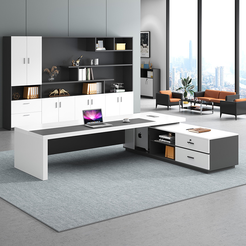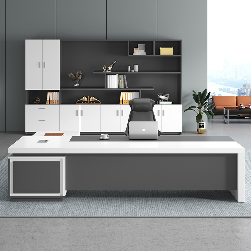 Nội thất văn phòng Bàn làm việc Boss Bàn Chủ tịch Đơn giản Hiện đại Bàn giám sát Bàn giám đốc Kết hợp Ghế đơn Màu trắng