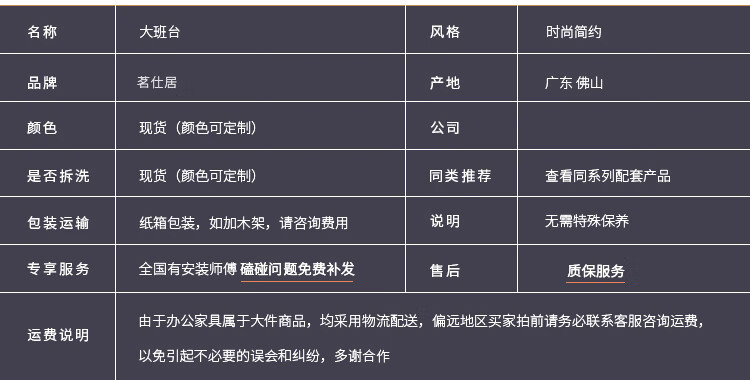 Sơn: Không sơn Nhãn hiệu: Meiyitai Mã sản phẩm: FLZZ-103 Màu sắc: Bàn Boss 1,8m Trao đổi tủ bên cạnh/Bàn sếp 1,8m + Trao đổi tủ bên ghế/Bàn sếp 1,8m + Tủ tài liệu 2,4m/Bàn sếp 1,8m + 2,4 tủ hồ sơ m + ghế/bàn sếp 3m/bàn 3.0m + ghế/bàn 3.0m + tủ hồ sơ 3.2m + ghế/bàn 3.0m + tủ hồ sơ 3.2/bàn 3.0m + tủ hồ sơ 3.2 Danh mục sản phẩm: phần cứng bàn giám đốc Mô tả sản phẩm phụ kiện: / Kiểu máy: / Chứng nhận: Không Giao hàng tận nơi: Giao hàng và lắp đặt tích hợp Dịch vụ lắp đặt có được cung cấp hay không: Có Các dịp áp dụng: Văn phòng Người nộp thuế chung: Không Viền cạnh: pur Vật liệu viền cạnh: bảng gỗ Không gian: thương mại trang web Thuộc tính thương mại ván gỗ: / Có thể bị từ chối Thực hiện: Có hoặc không Xuất khẩu xuyên biên giới Nguồn cung cấp đặc biệt: Không Phong cách: Hiện đại và đơn giản