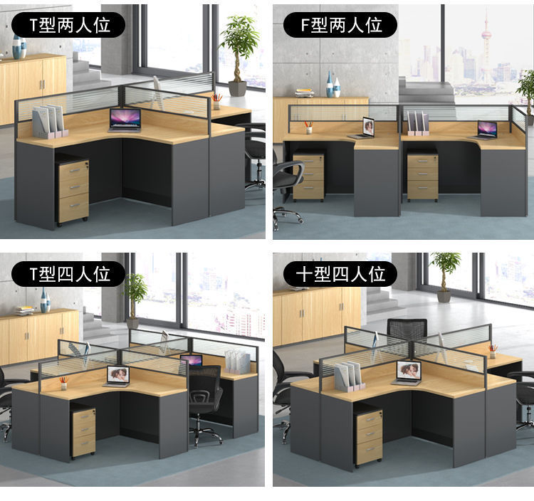 Nội thất văn phòng bàn vi tính 4 bàn trên 6 người màn hình bàn nhân viên bàn ghế kết hợp bàn