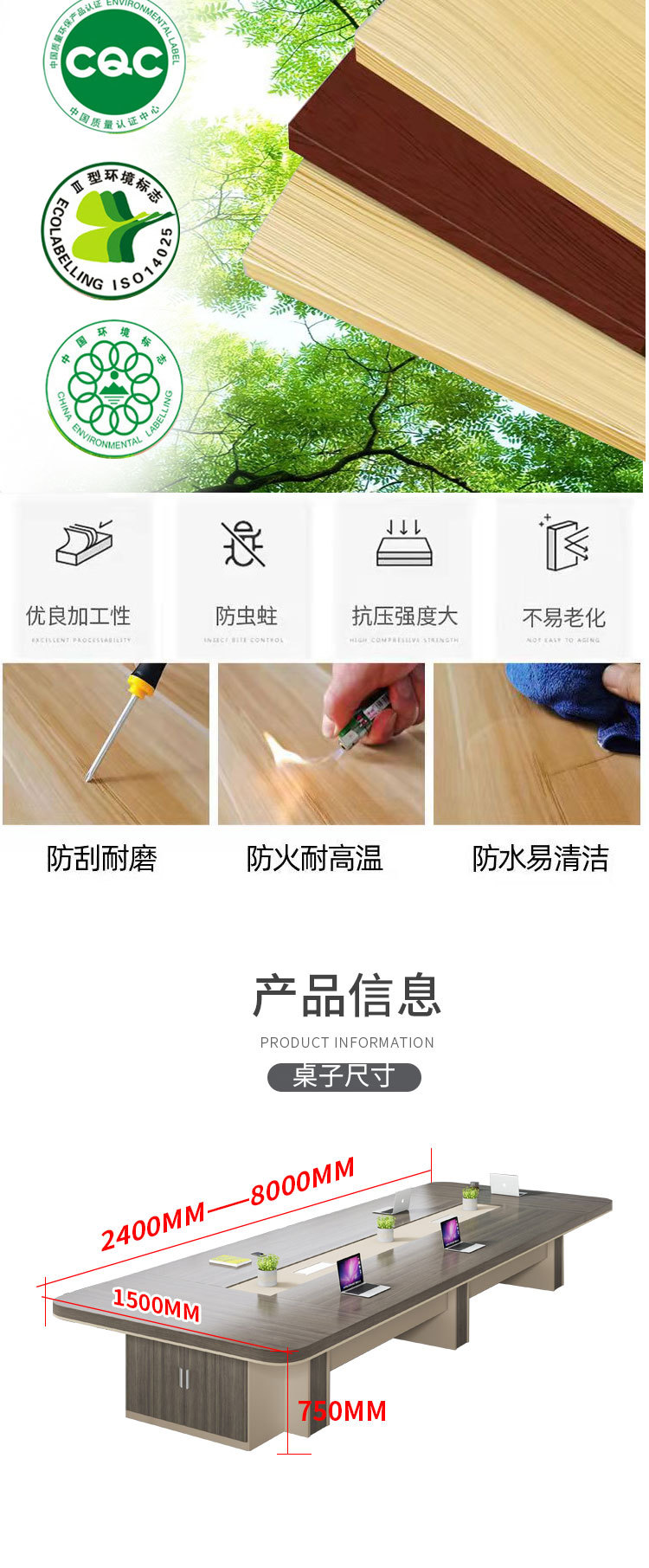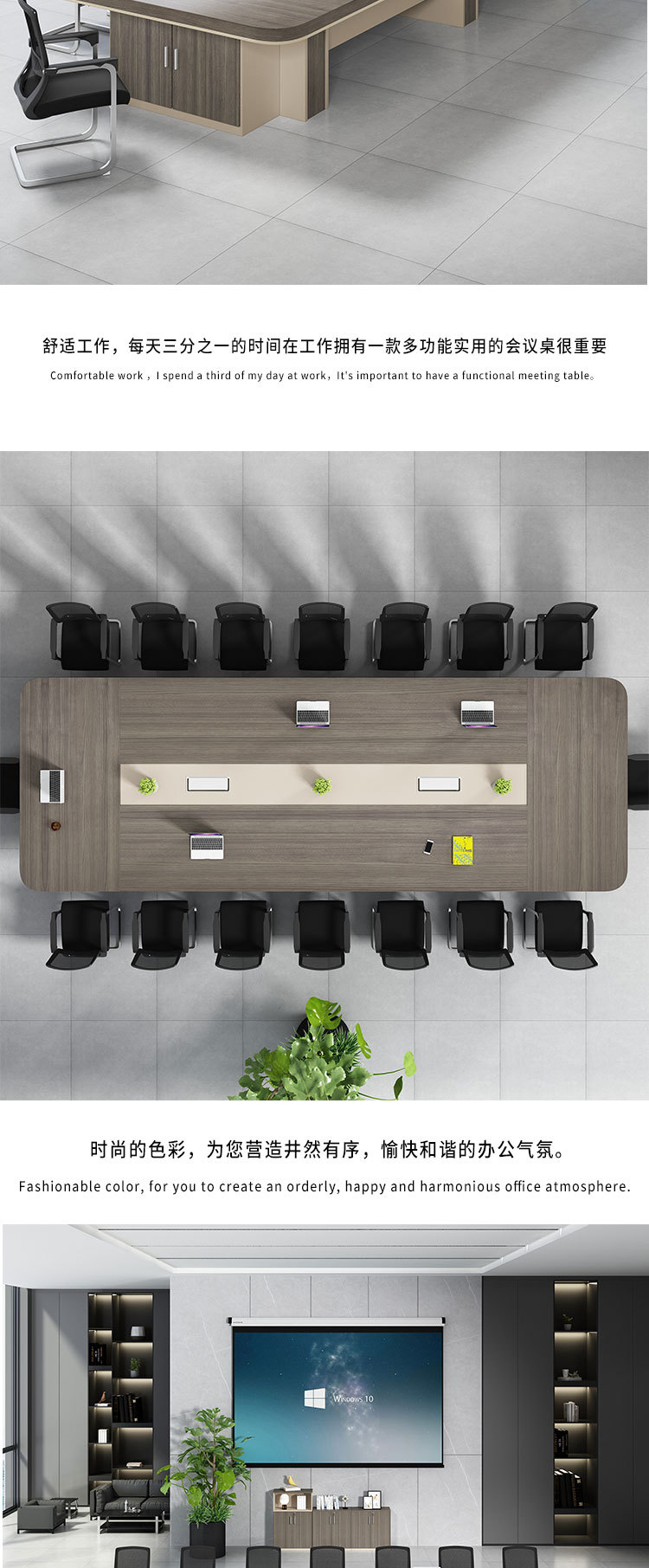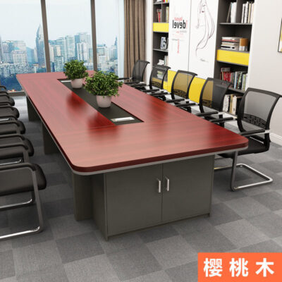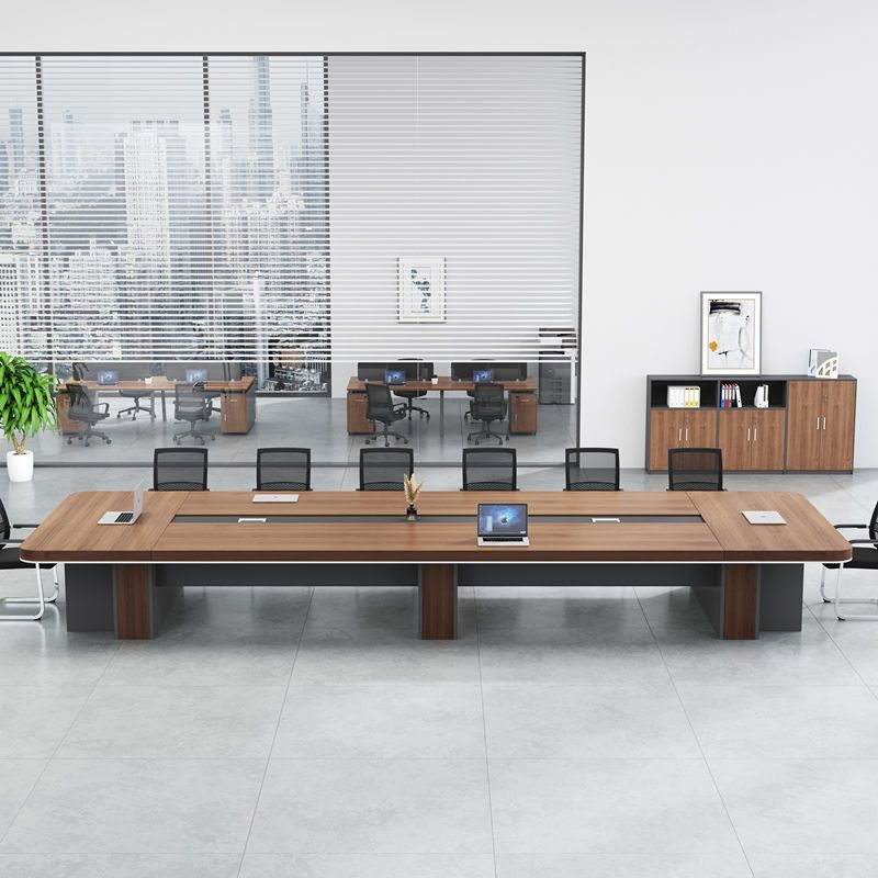 Nội thất văn phòng bảng chữ nhật bàn hội nghị lớn bàn dài có hộp dây đơn giản hiện đại bàn đàm phán kết hợp ghế