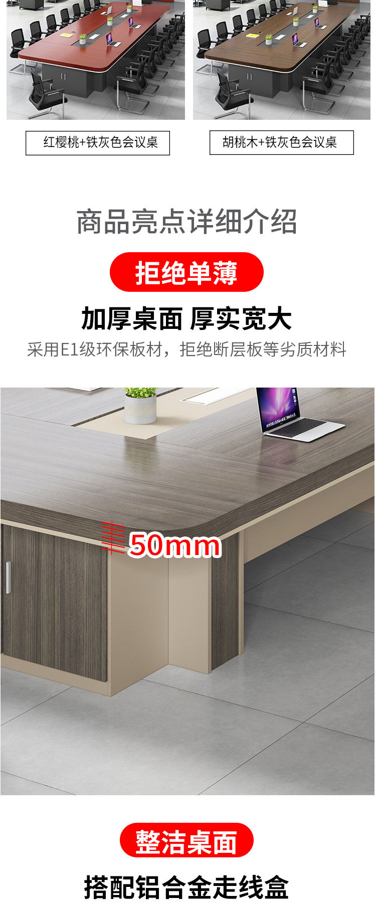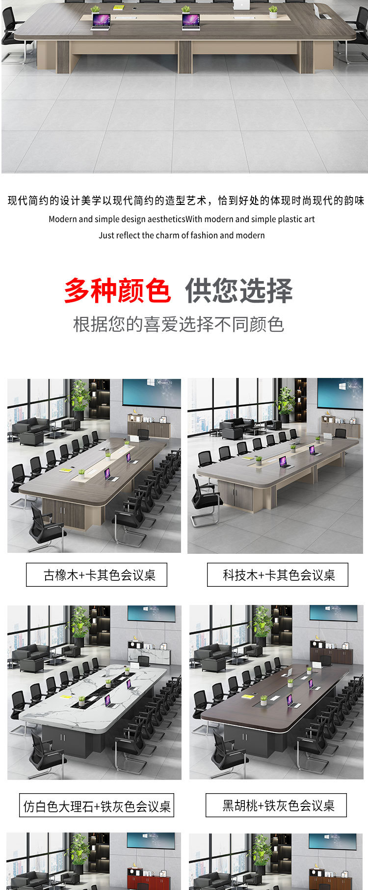 Nội thất văn phòng bảng chữ nhật bàn hội nghị lớn bàn dài có hộp dây đơn giản hiện đại bàn đàm phán kết hợp ghế