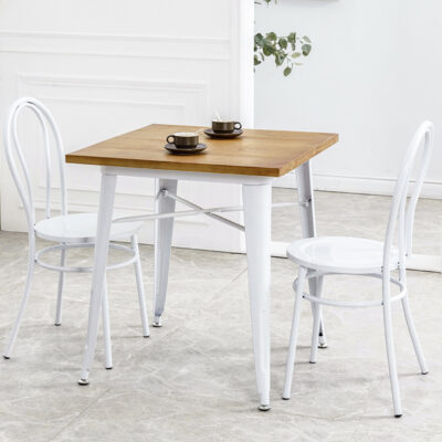 nổi tiếng trên Internet ins cửa hàng tráng miệng bàn ghế gỗ đặc kết hợp ghế trà sữa lưng ghế sắt rèn quán cà phê phong cách công nghiệp bàn ăn màu trắng