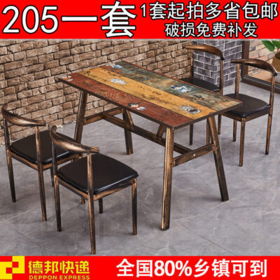 nổi tiếng trên Internet ins cửa hàng tráng miệng bàn ghế gỗ đặc kết hợp ghế trà sữa lưng ghế sắt rèn quán cà phê phong cách công nghiệp bàn ăn màu trắng