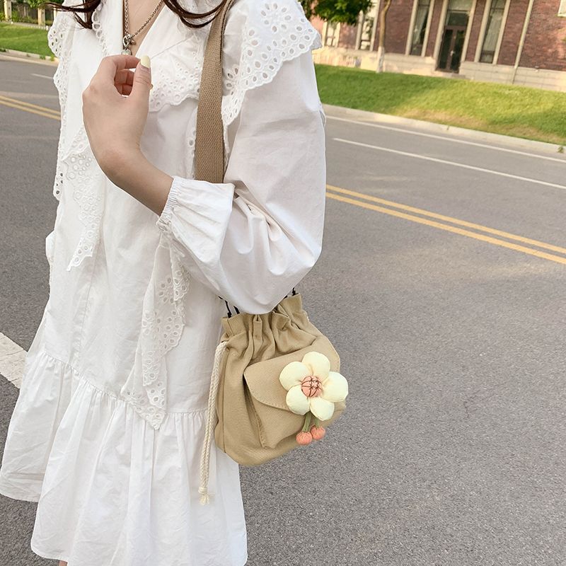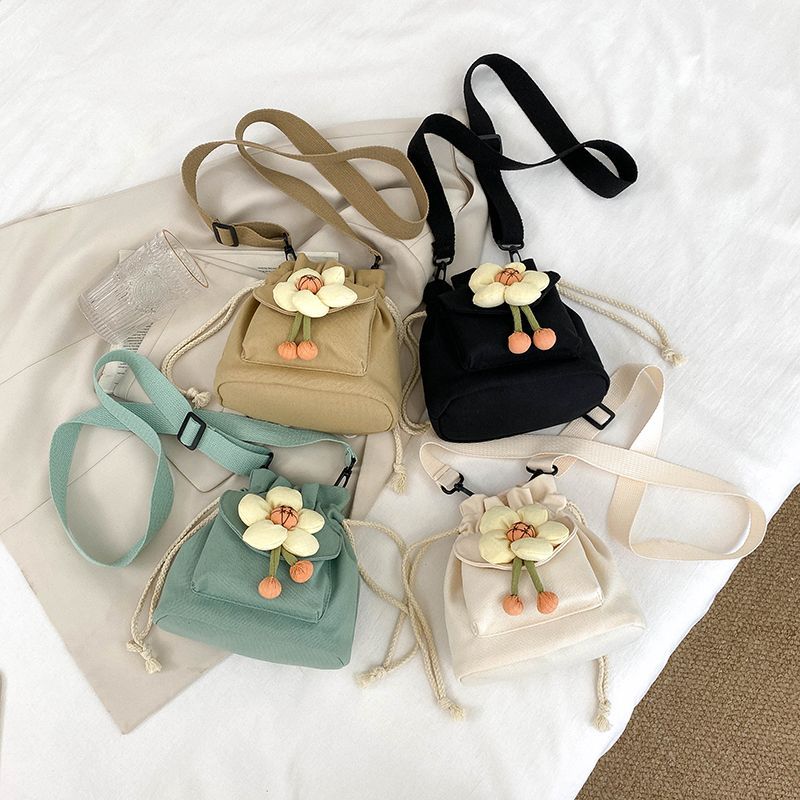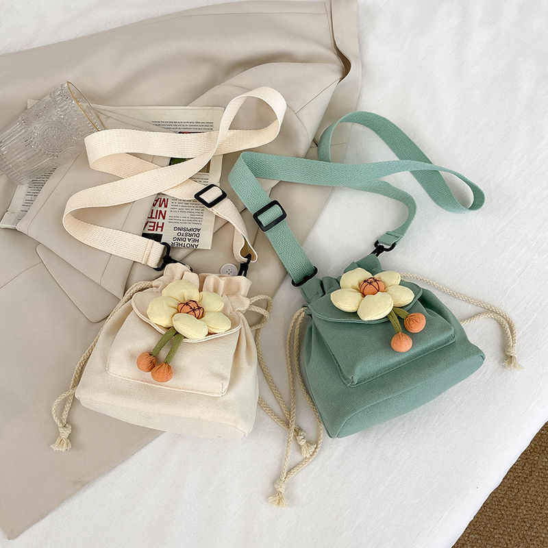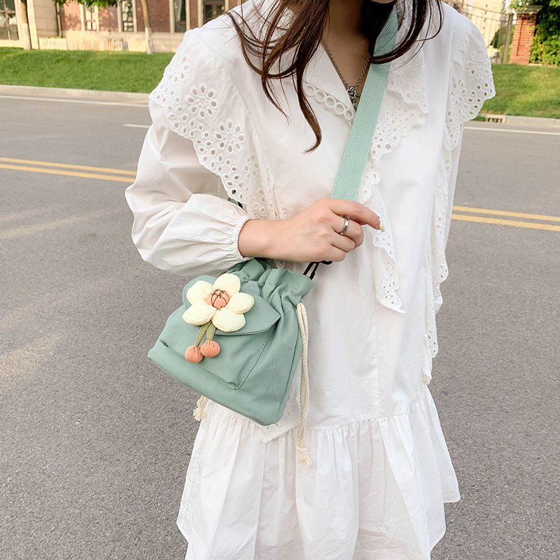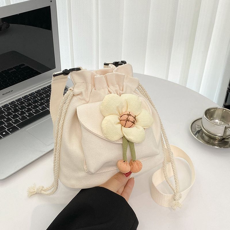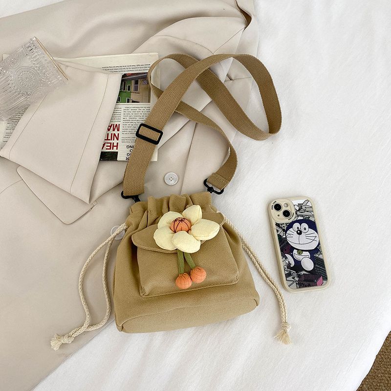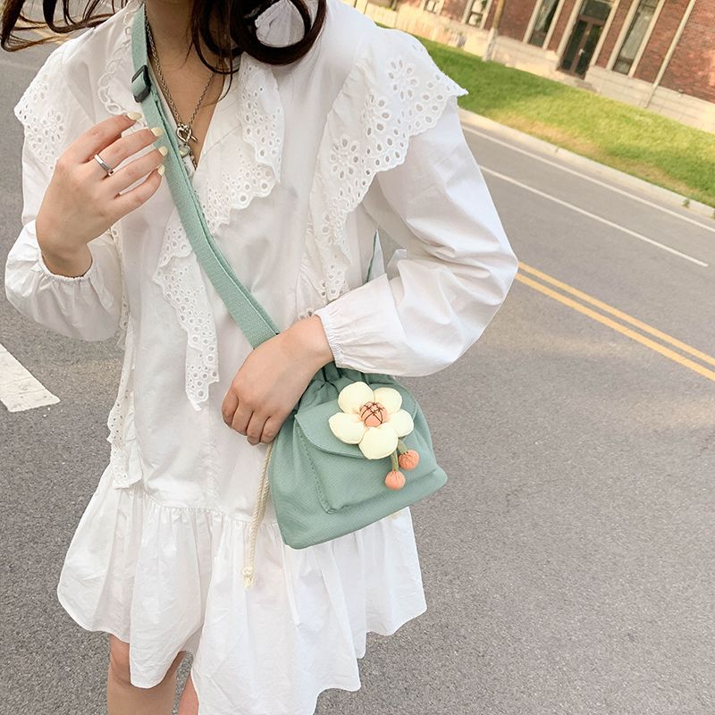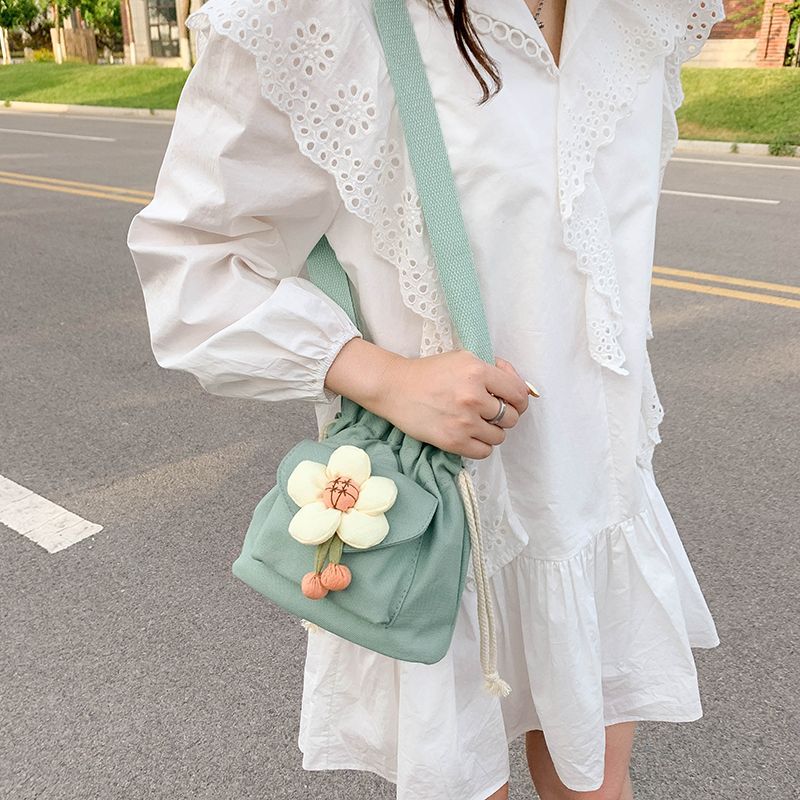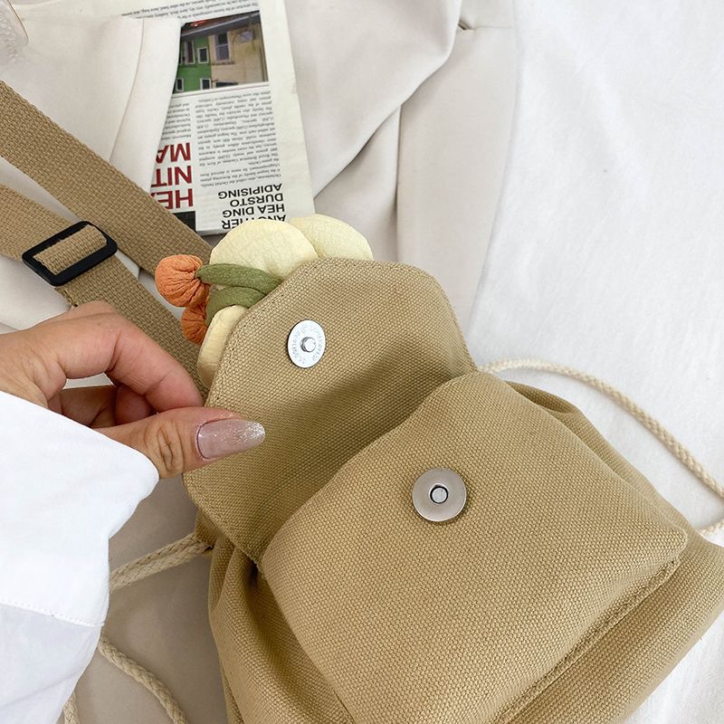 Nữ Mori Pháp ngọt ngào đi biển canvas đeo vai túi nhỏ phổ biến dễ thương túi đeo chéo hoa dễ thương