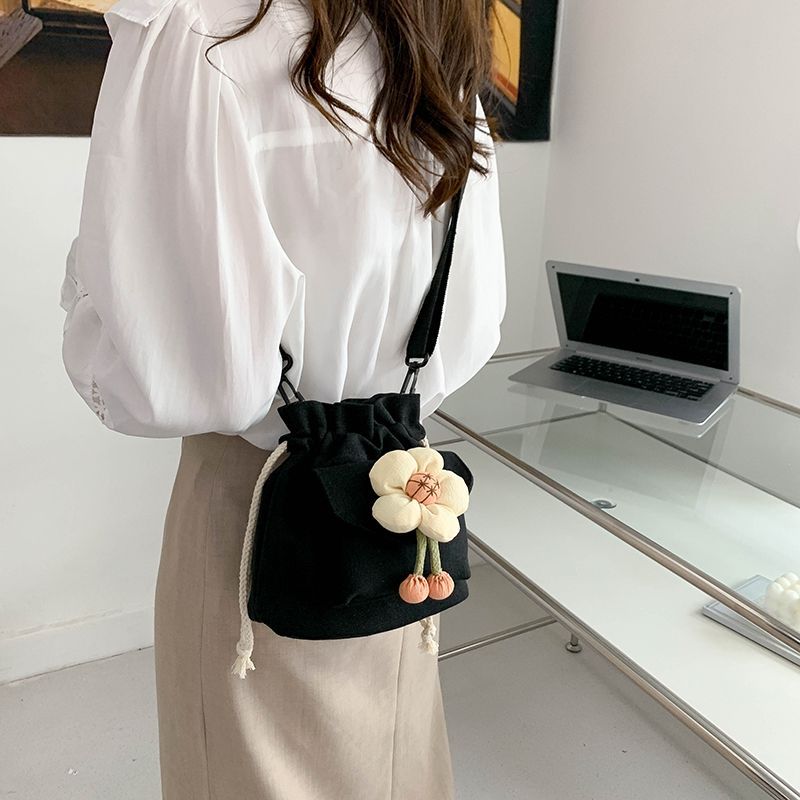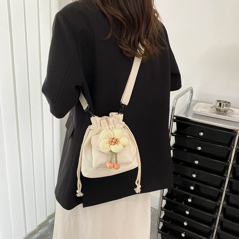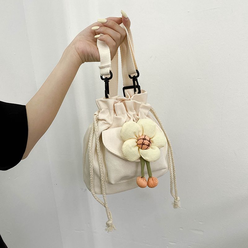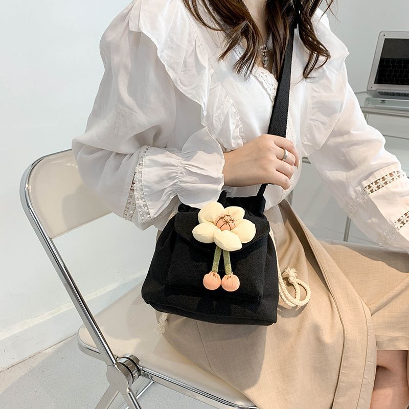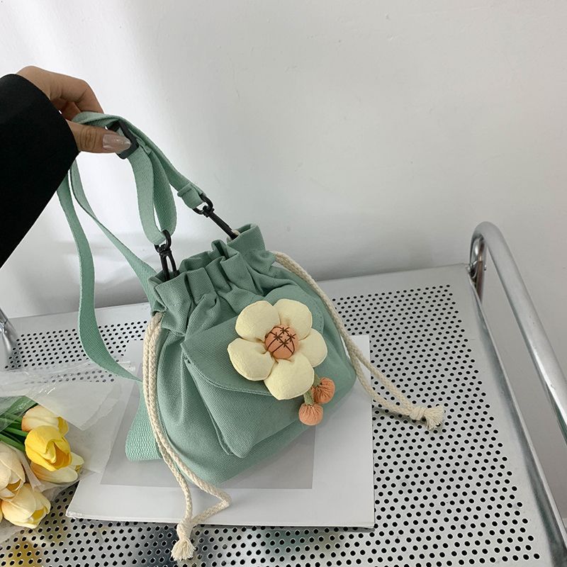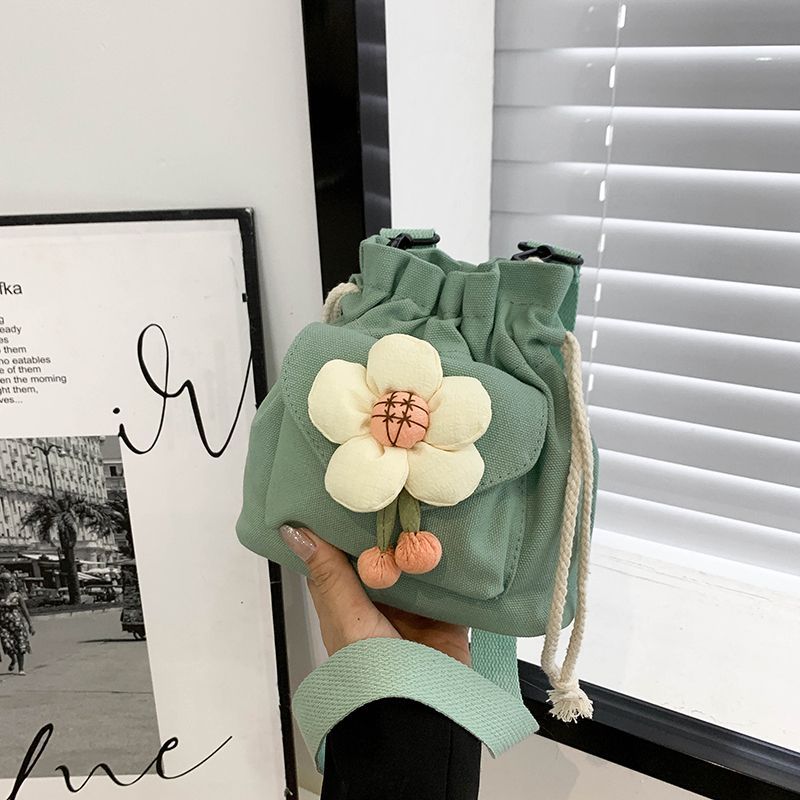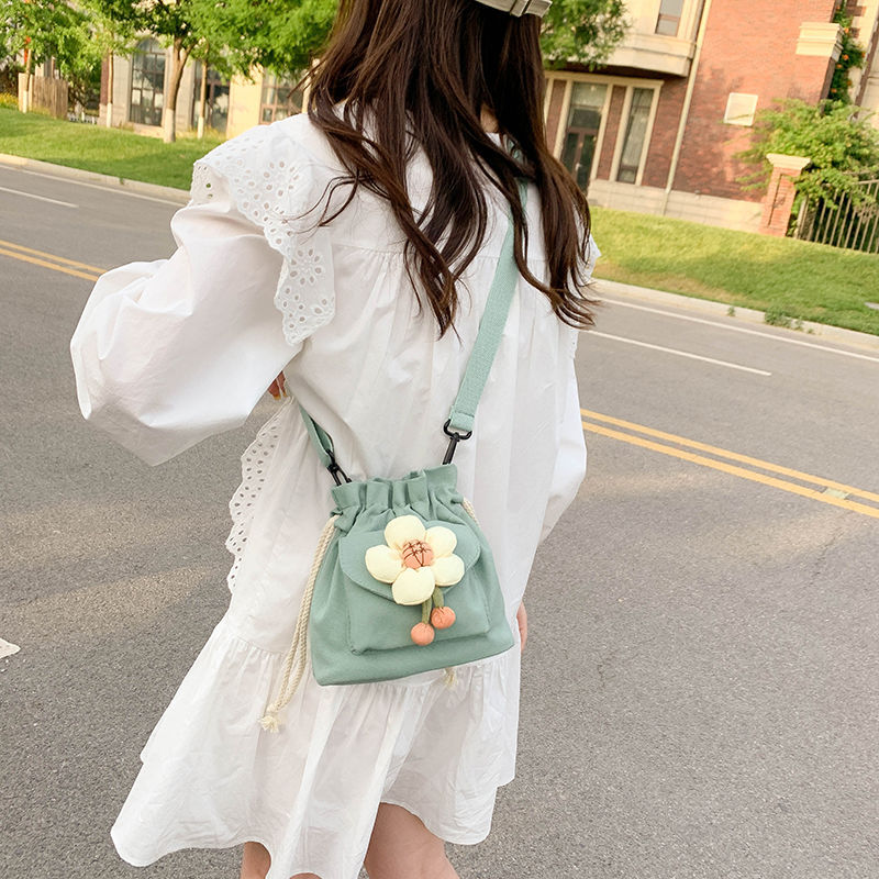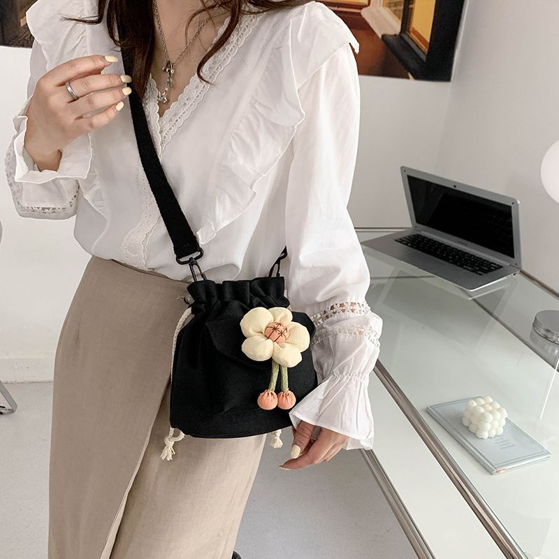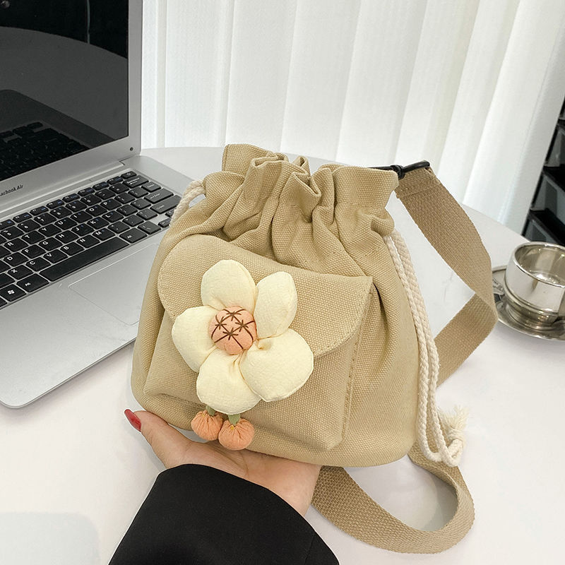 Nữ Mori Pháp ngọt ngào đi biển canvas đeo vai túi nhỏ phổ biến dễ thương túi đeo chéo hoa dễ thương
