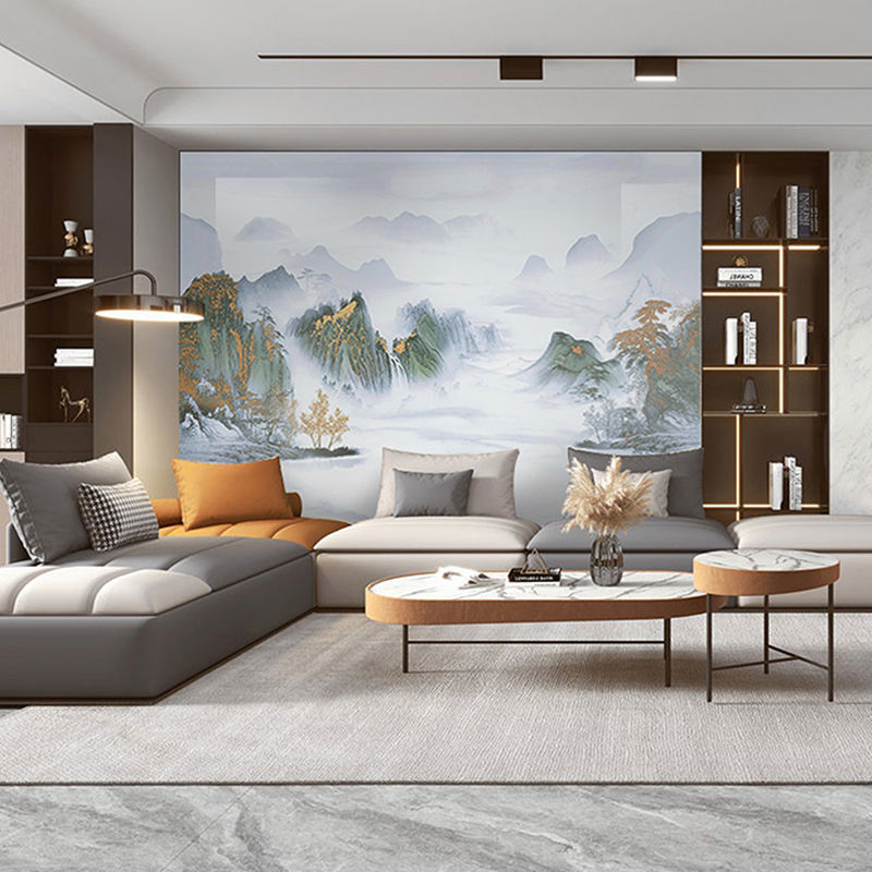 Núi 8002600 phiến đá nền TV trang trí tường phòng khách với phong cách phong cảnh gạch phiến lớn đơn giản