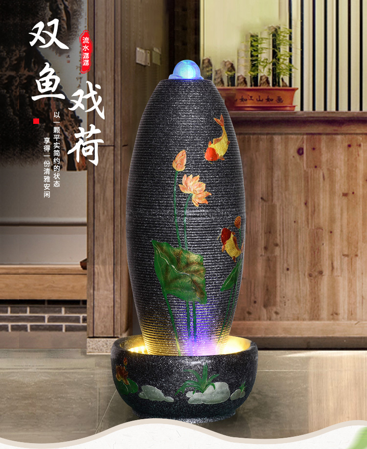 Nước chảy đài phun nước phòng khách văn phòng kiếm tiền đồ trang trí cối xay gió bánh xe nước trang trí nhà làm ẩm bóng hạ cánh mở quà