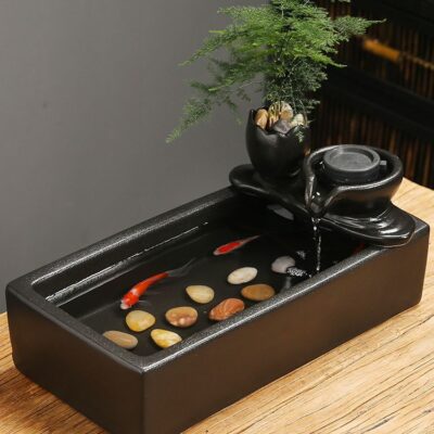 Nước chảy sáng tạo trang trí đài phun nước tuần hoàn gốm sứ phòng khách kiếm tiền may mắn máy tính để bàn văn phòng micro-xem món quà mở đầu