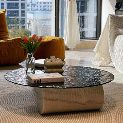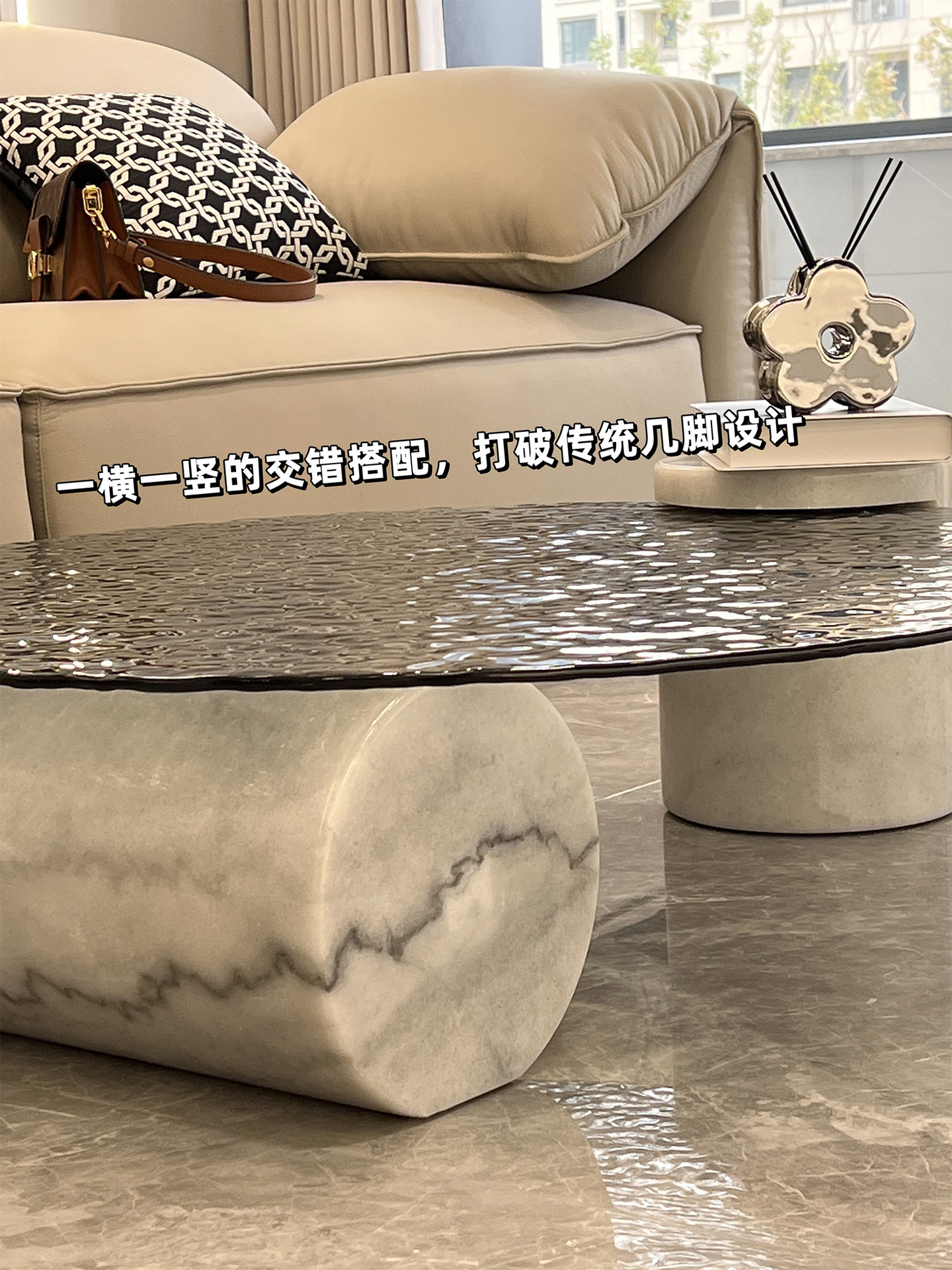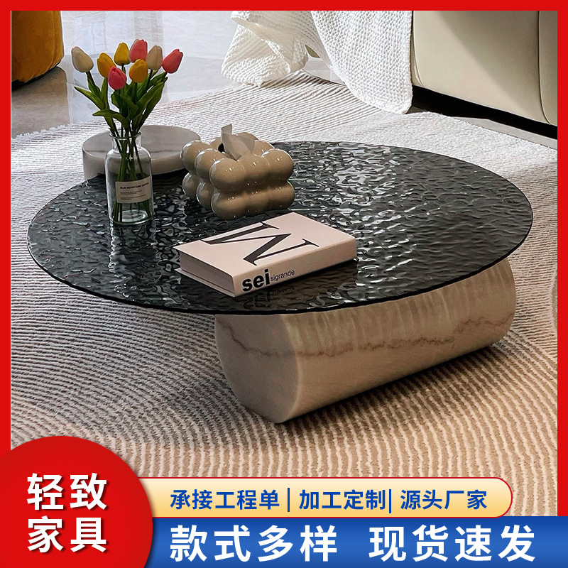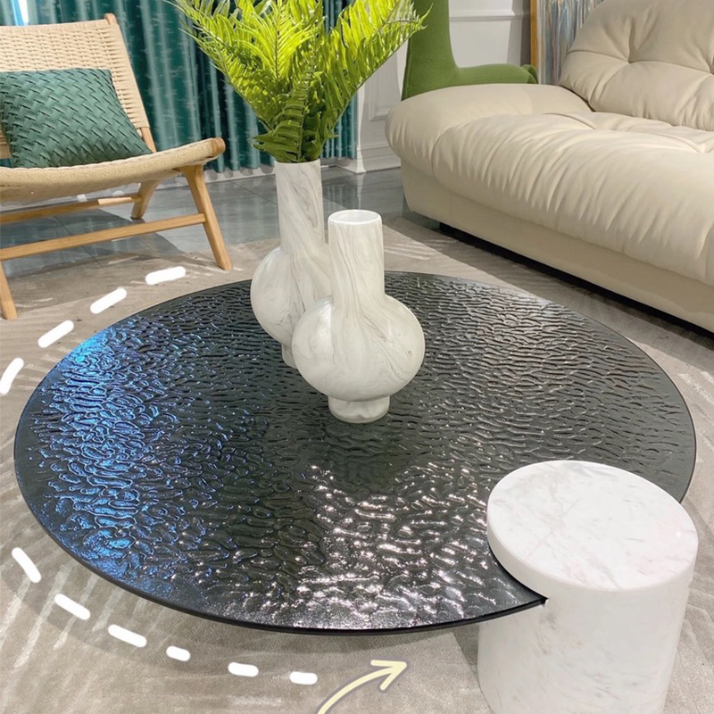 Nước gợn sóng kính cường lực bàn cà phê phòng khách nhà căn hộ nhỏ Đẹp sang trọng hiện đại Ý tối giản cạnh bàn tròn