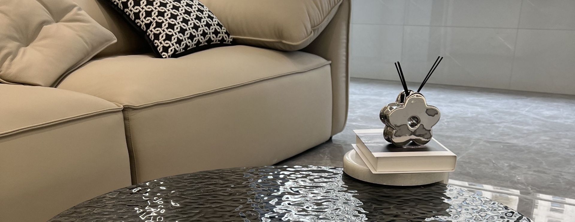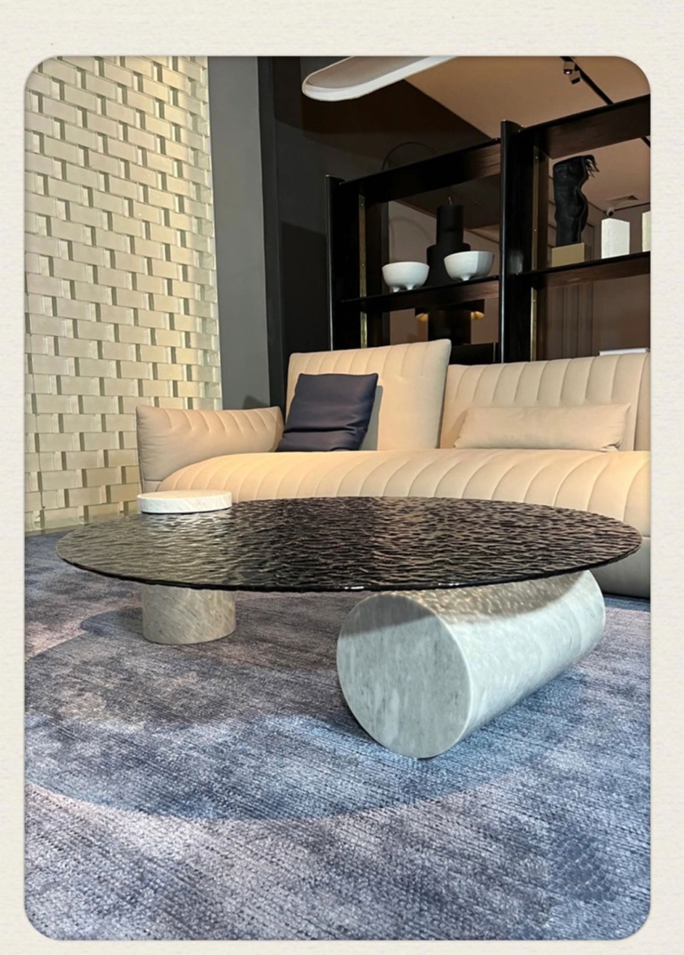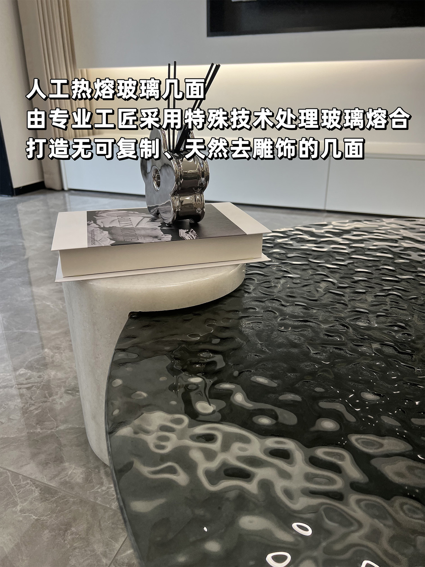 Nước gợn sóng kính cường lực bàn cà phê phòng khách nhà căn hộ nhỏ Đẹp sang trọng hiện đại Ý tối giản cạnh bàn tròn