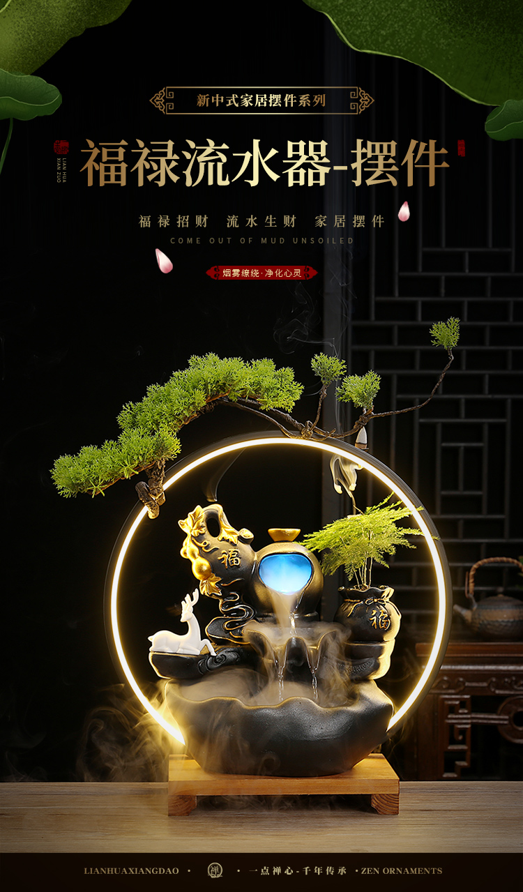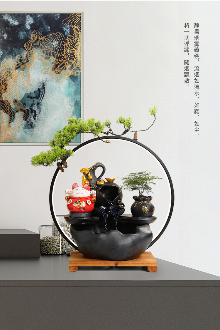 Nước lưu thông để thu hút sự giàu có, nhà sáng tạo, phòng khách, văn phòng, máy tính để bàn, trang trí mèo may mắn, bàn cà phê, quà tặng khai trương