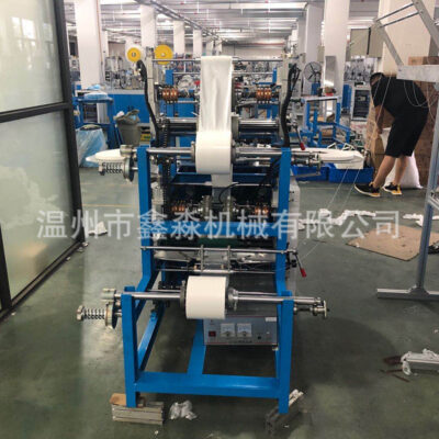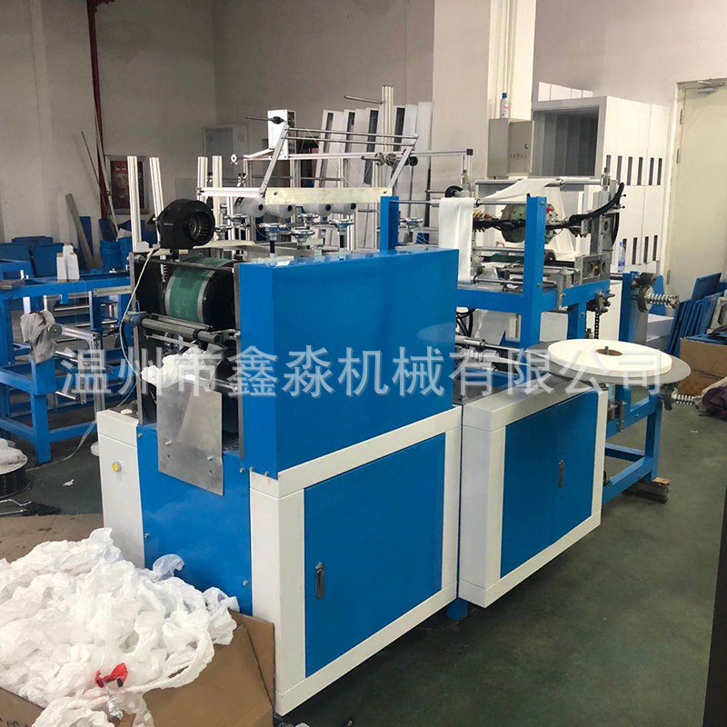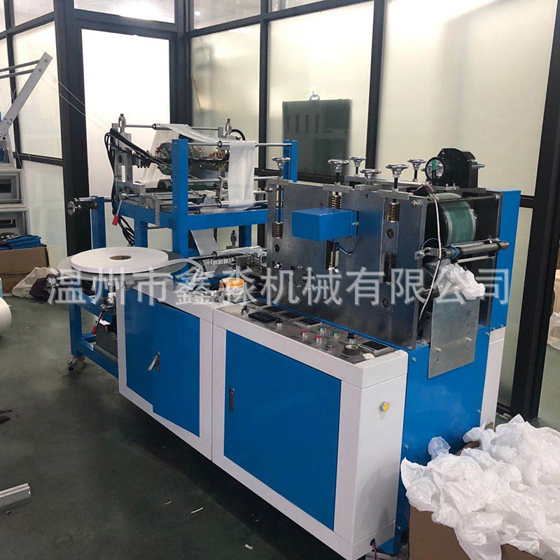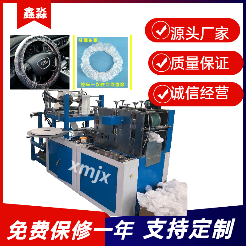 该机是一次性方向盘套专用生产设备,产品一次成型,并自动附加松紧带,以PE为材料,利用热烫缝合技术生产出适合各种尺寸的方向盘套。
