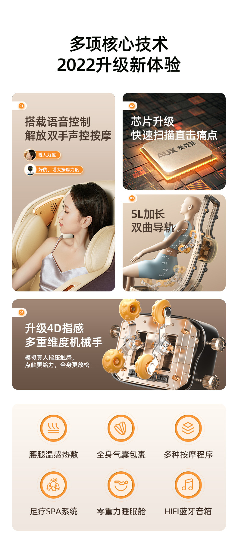 Thương hiệu: Aux/Ox Loại chuyển động: Massage thao tác 4D Cho dù đó là điều khiển thông minh: Có Danh mục sản phẩm: Ghế massage tại nhà Chức năng: Chức năng hẹn giờ/âm nhạc/chức năng âm nhạc Màu sắc: [tay máy màu nâu xám] ray dẫn hướng SL đôi + núm cầm tay + giọng nói AI / [Bộ điều khiển màu trắng và xám] Ray dẫn hướng SL đôi + Núm di động + Giọng nói AI/[Bộ điều khiển đen và nâu] Ray dẫn hướng SL đôi + Núm di động + Giọng nói AI/Xanh sang trọng/Nâu sang trọng/Giọng nói thông minh + Túi khí hông + Nâng cấp lõi kép + Back Back Chườm nóng ngải cứu + nâu đen/giọng nói thông minh + túi khí hông + nâng cấp lõi kép + chườm nóng ngải cứu lưng và lưng + nâu trắng/K9-1 (model sang trọng/nâng cấp 30 đầu/9 chế độ/9 cấp độ sức mạnh/ 3 mức định thời/nén nóng)/K9-1 (phía trên có giá đựng có thể tháo rời được nâng cấp)/K9-1 (phía trên có giá đựng có thể tháo rời được nâng cấp) Vải: Da PU Loại đường ray: Đường ray loại SL Phương pháp lắp đặt: không cần đúc một mảnh lắp đặt Số lượng túi khí: 30 Và các nguyên tắc massage sau: rung/đập/nén nóng/túi khí/mát xa/vỗ/nhào/nhào