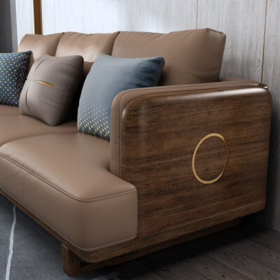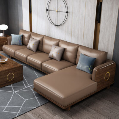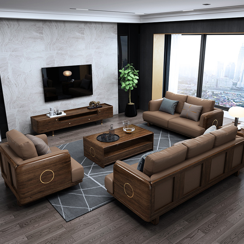 Óc Chó Sofa Mới Phong Cách Trung Hoa Da Nghệ Thuật Sofa Kết Hợp Bàn Ghế Phòng Khách Bộ Mềm Gói Sofa Gỗ Chắc Chắn M05