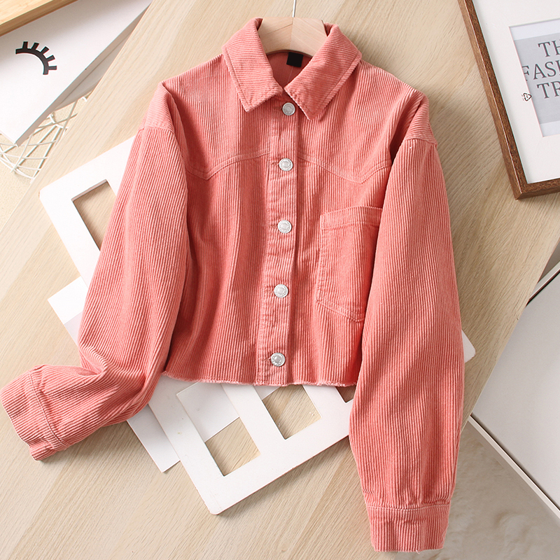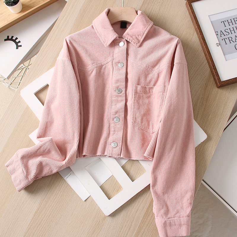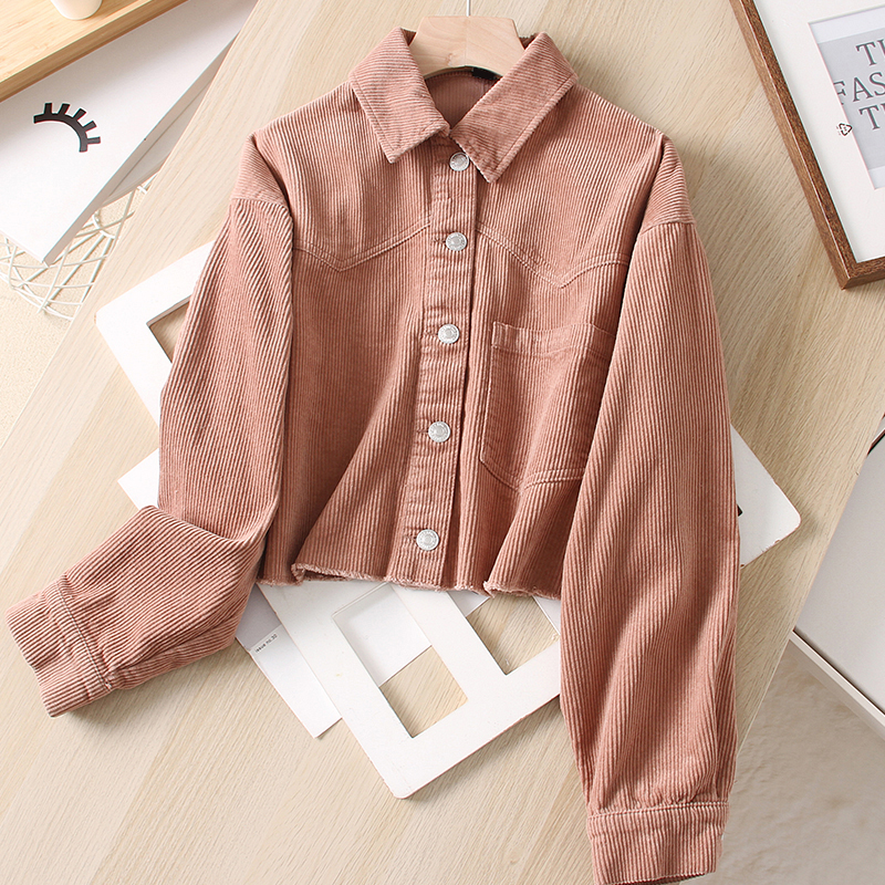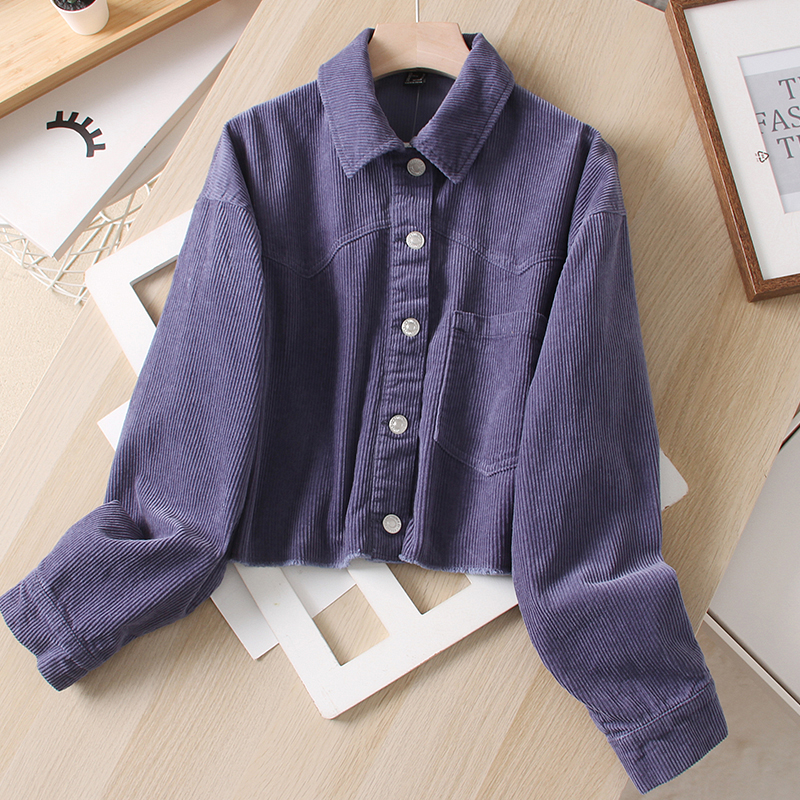 Old Beauty Lip W happiness Pick-Up Veel Veel Corduroy Fur Edge Áo khoác dài tay ngắn