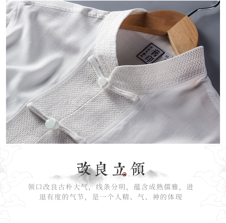 Old in cha Trung Quốc băng lụa Tang phù hợp với nam giới phù hợp với tay ngắn trung niên ông mùa hè vải lanh Trung Quốc