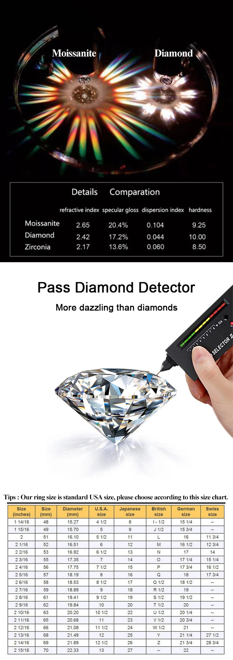 Material : 100% 925 Sterling Silver + Moissanite