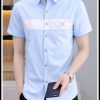 Ông cotton sợi nhuộm sọc đứng cổ áo sơ mi dài tay rộng rãi nam mùa xuân giản dị thời trang tiết kiệm thủy triều áo sơ mi nam