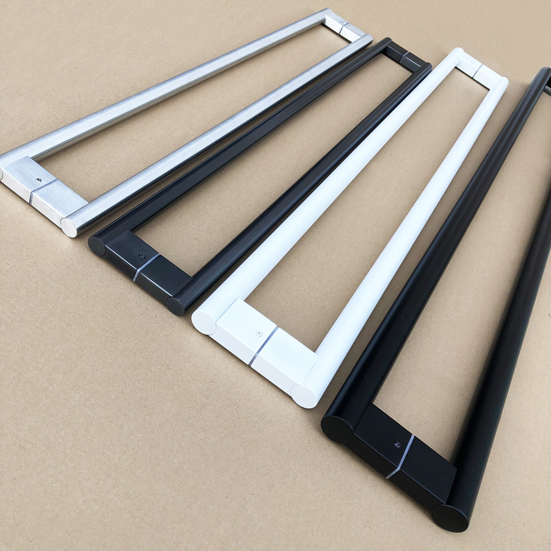 Ống thép không gỉ tròn ống kính màu đen lan can khách sạn cửa gỗ tay nắm cửa khung cửa trượt đơn giản tay cầm lớn màu đen mờ
