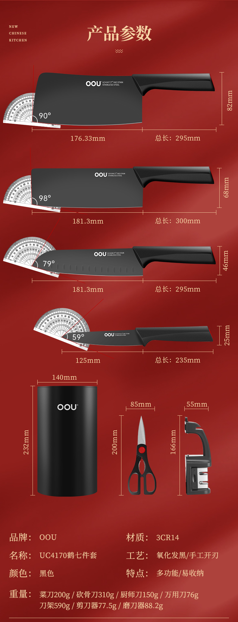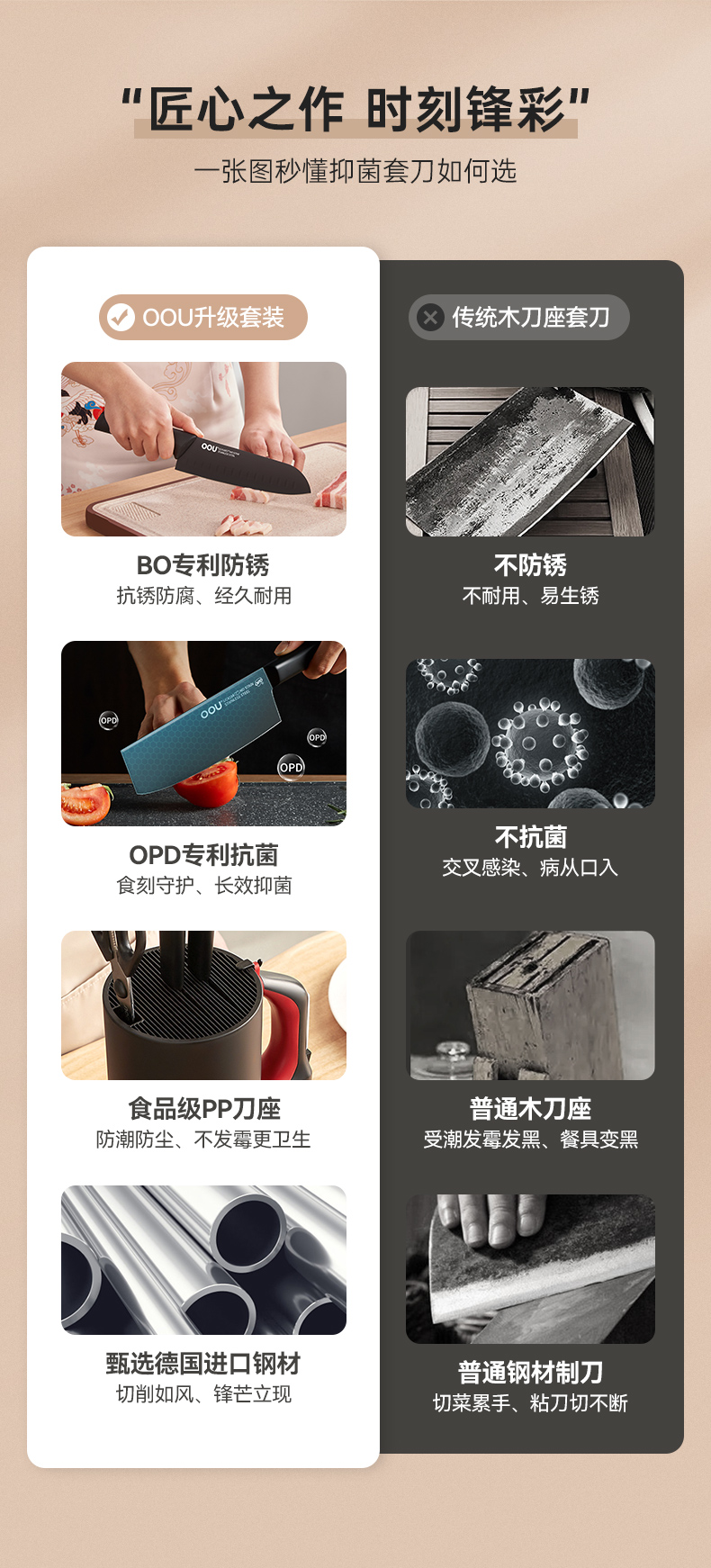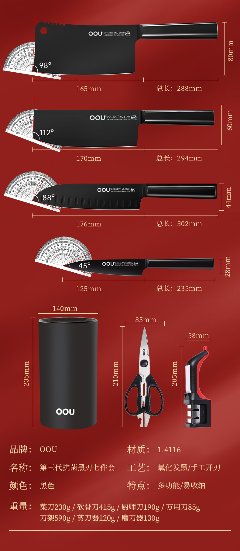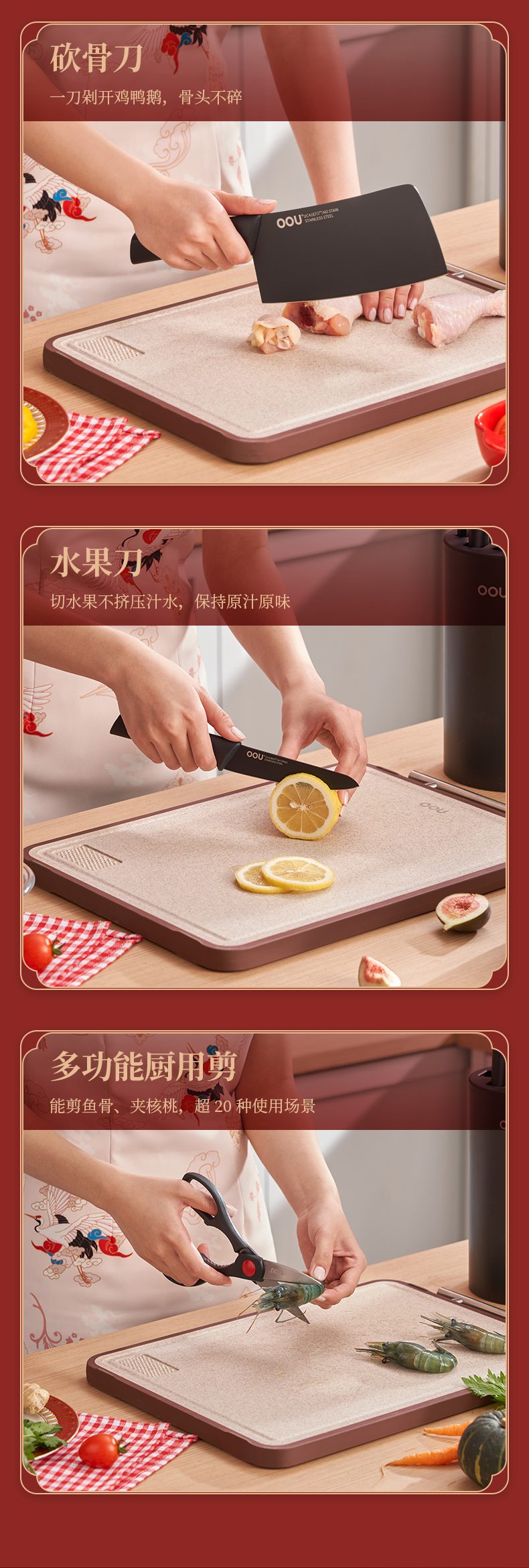 Dao OOU. Bộ dao oou nhà bếp. Bộ dao nhà bếp kết hợp đầy đủ. Bộ dao trái cây bằng thép không gỉ