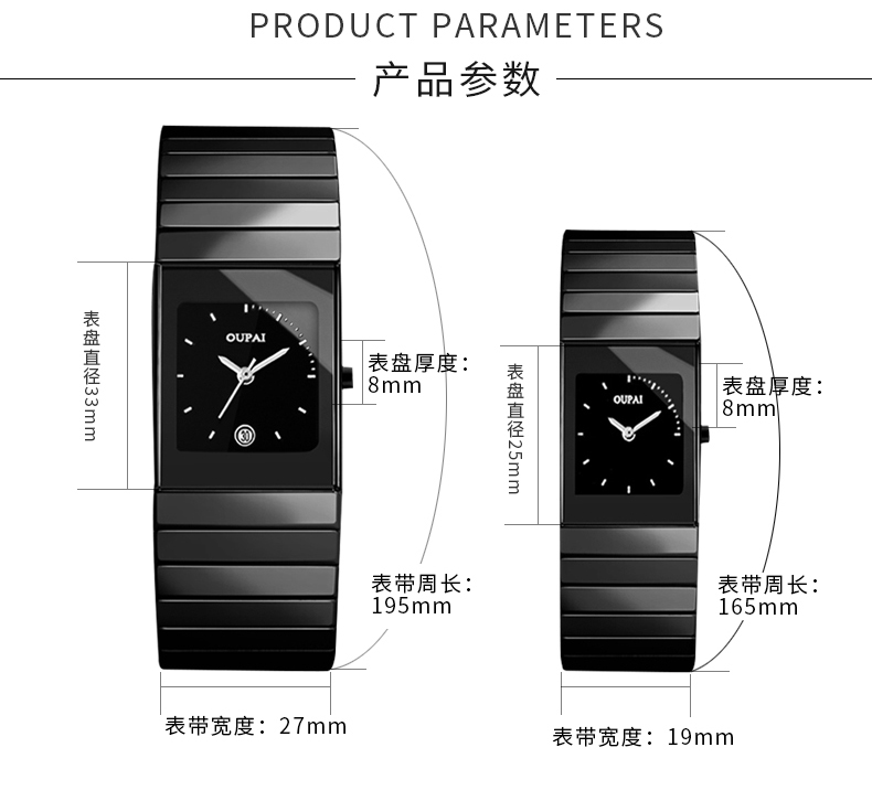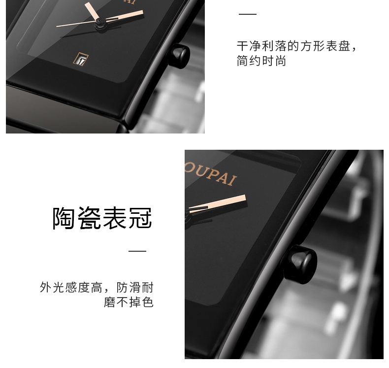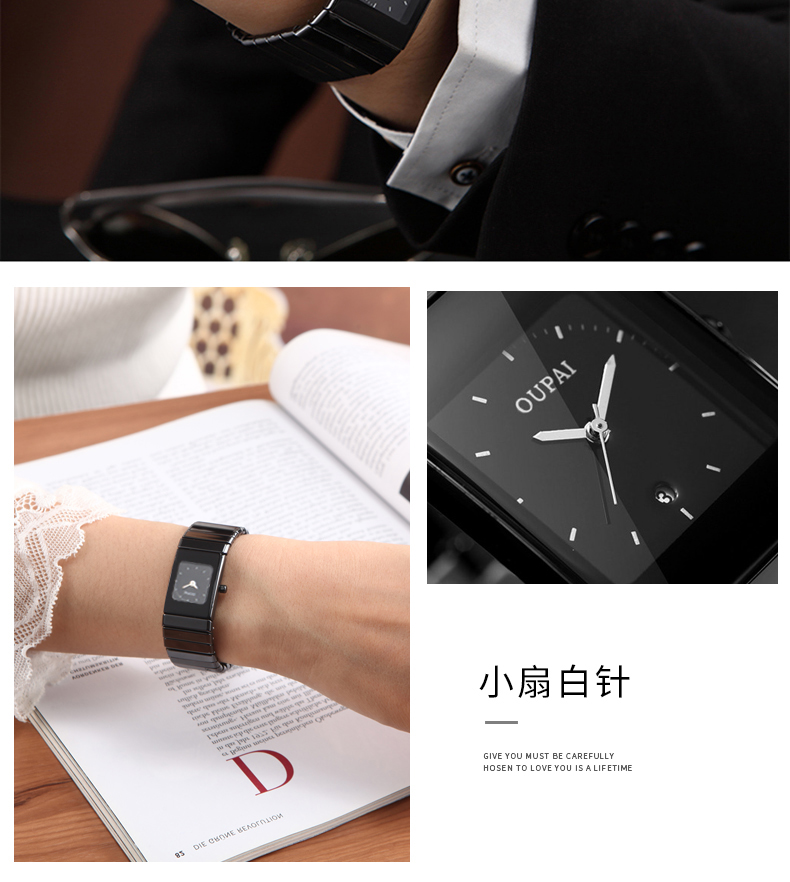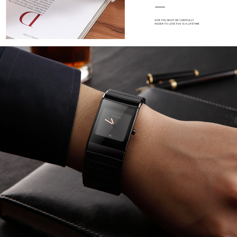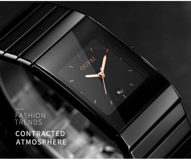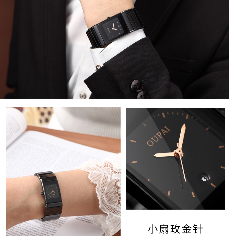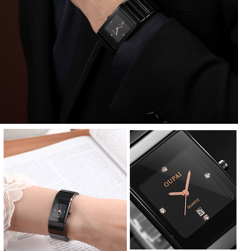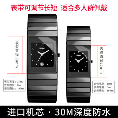 Opie Nam Chống Thấm Nước Vuông Thời Trang Hình Chữ Nhật Đơn Giản Đồng Hồ Nam Gốm Cặp Đôi Đen King Kong Dạ Quang Đồng Hồ Nữ
