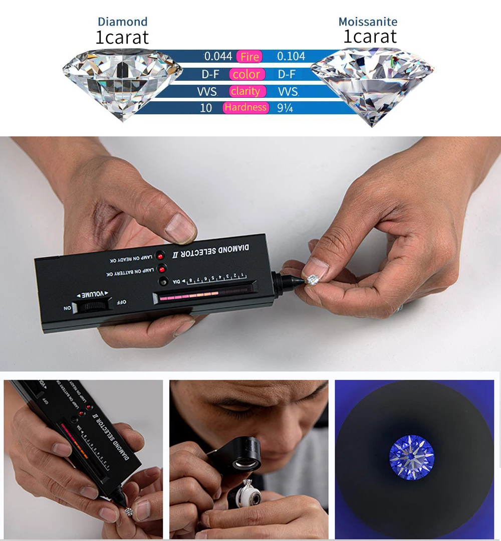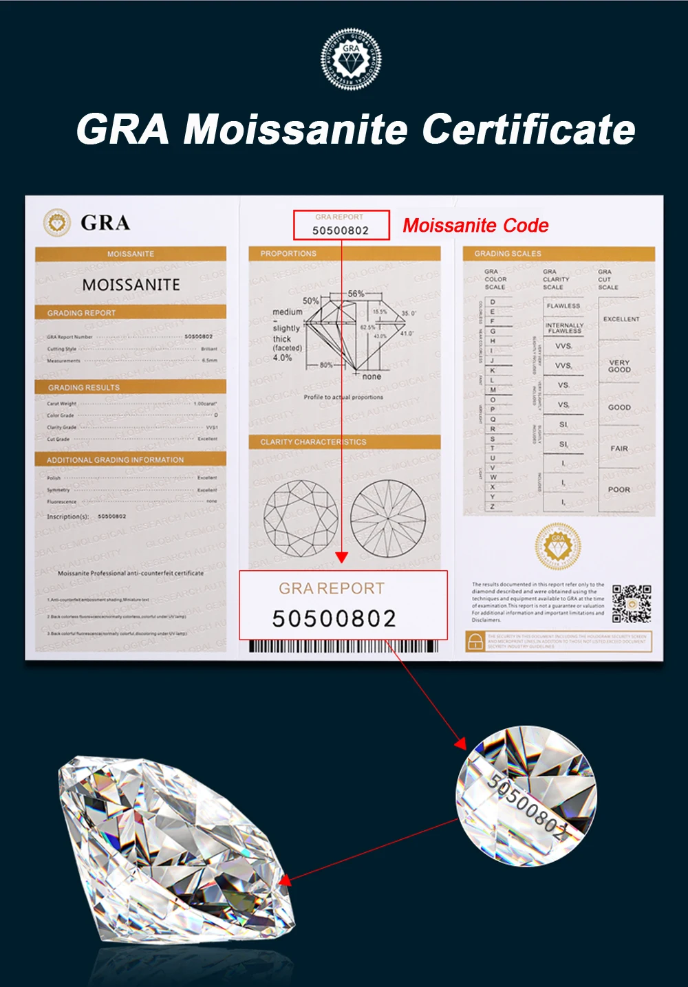 Main Stone: DE Color Moissanite Diamond+5A Cubic Zircon