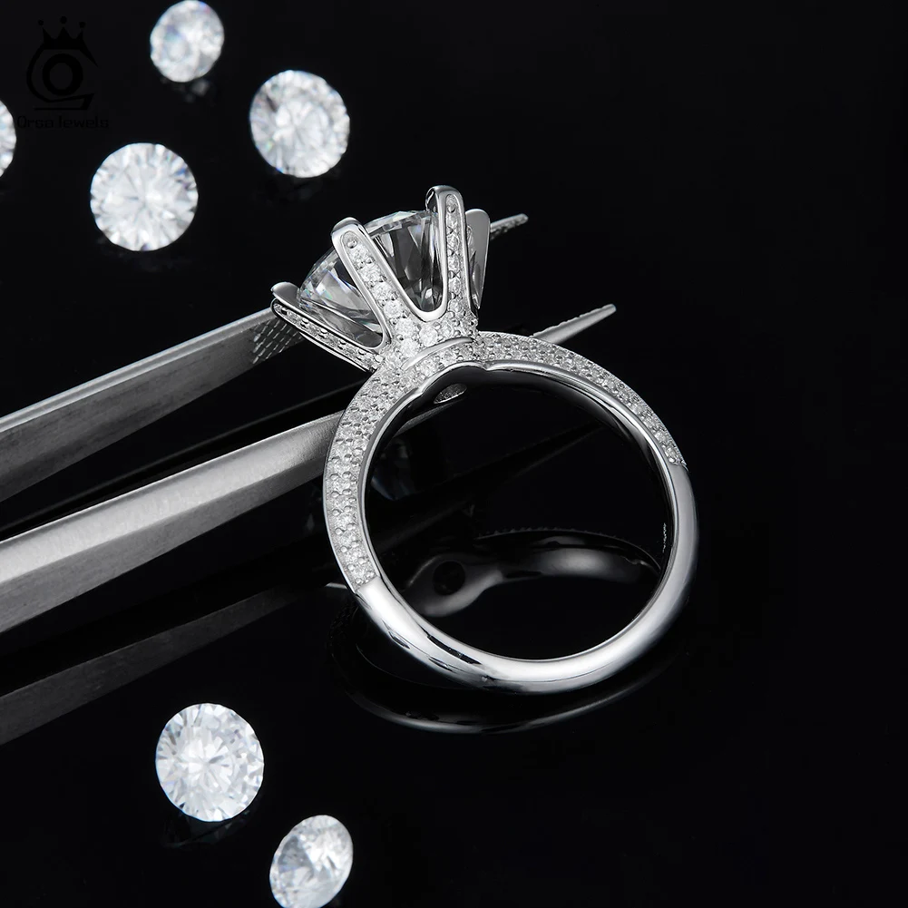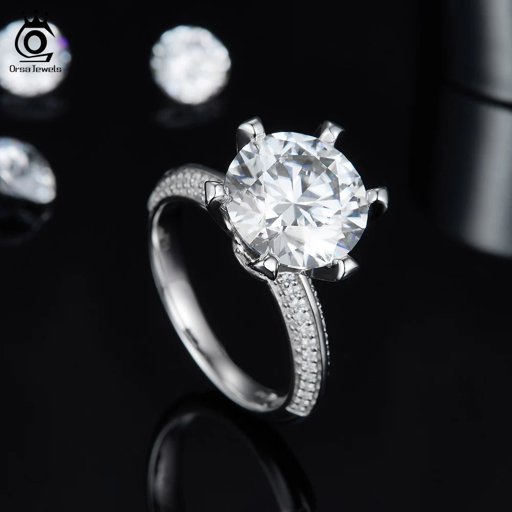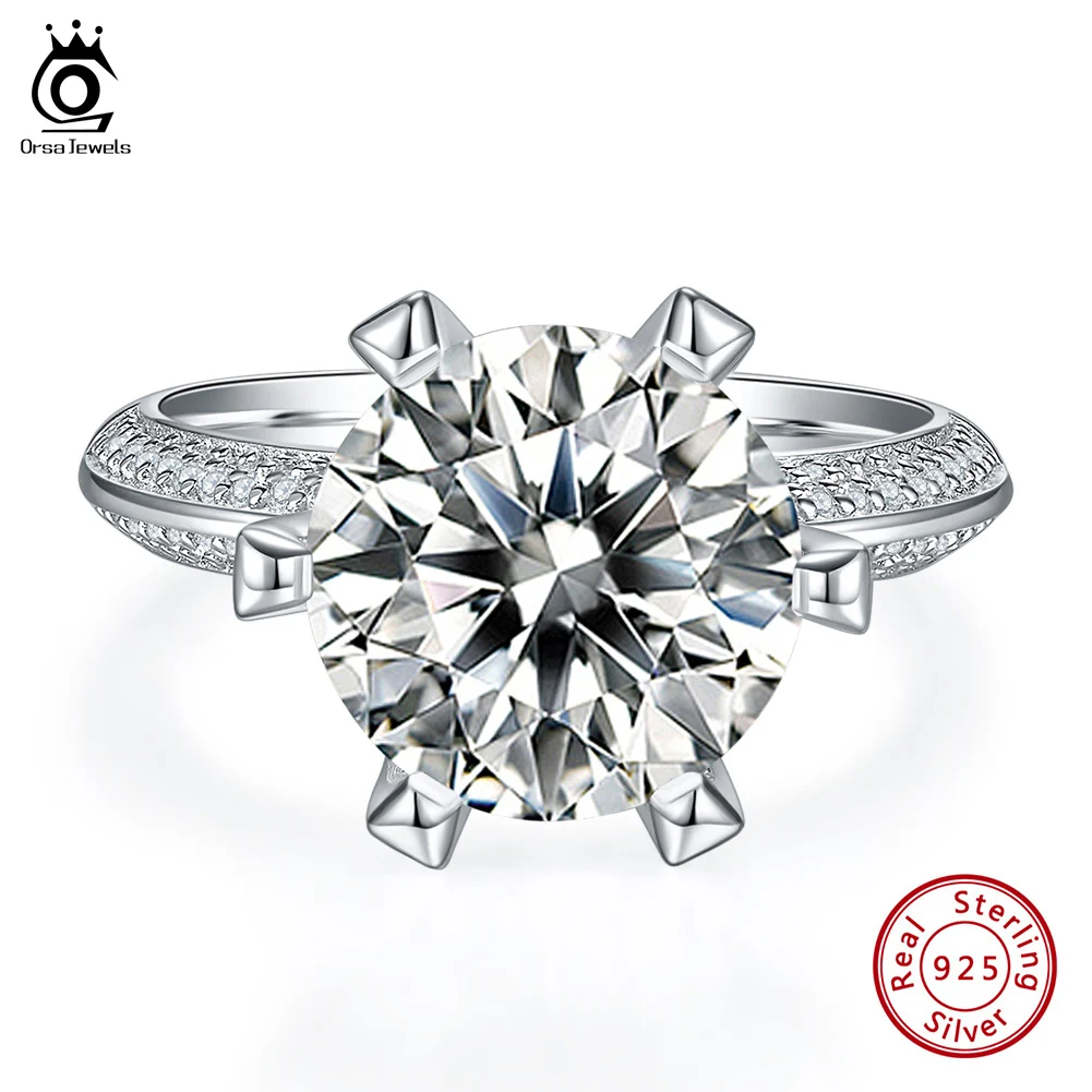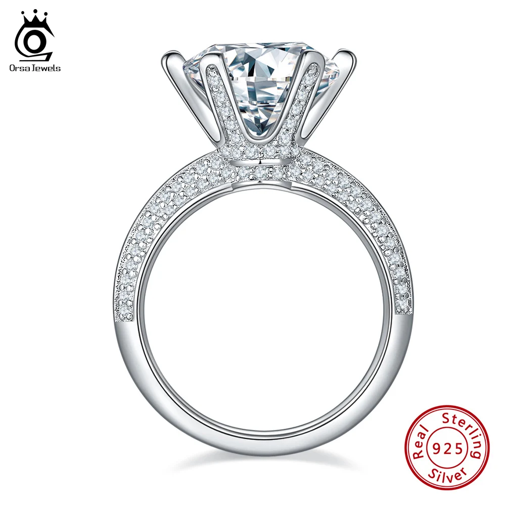 ORSA JEWELS 5ct DE Color Solitaire Moissanite Engagement Rings for Women 925 Silver Lab Diamond Wedding Ring Fashion Gift SMR52