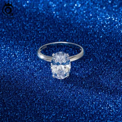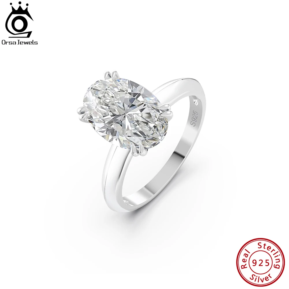 ORSA JEWELS 925 Sterling Silver Brilliant Oval Faux Diamond Halo Premium Cubic Zirconia Ring for Women Wedding Jewelry LZR06
