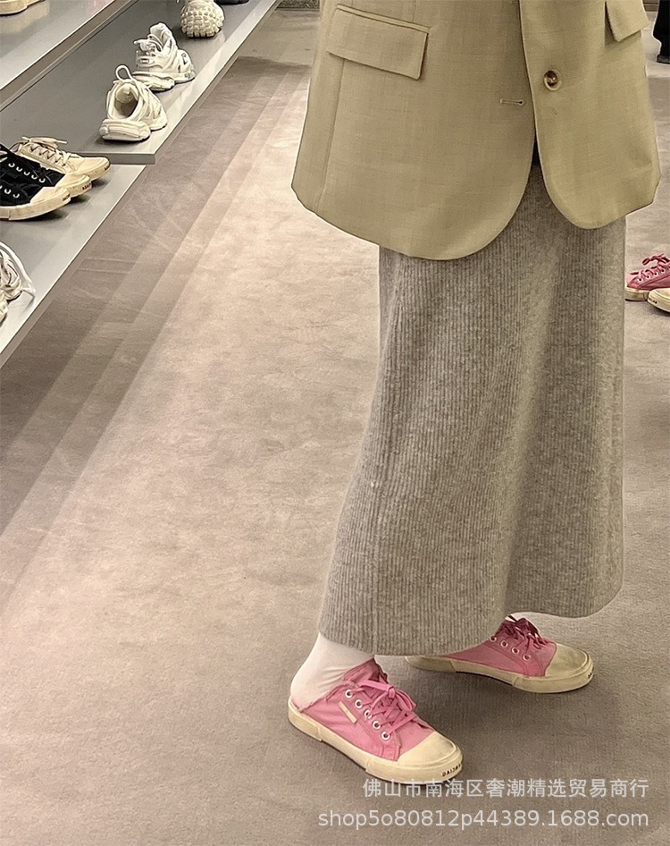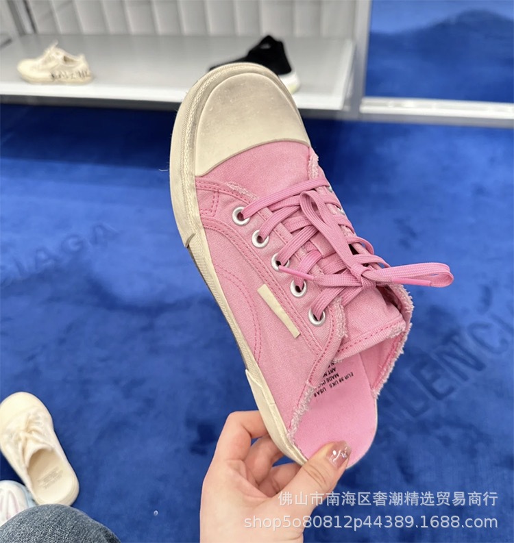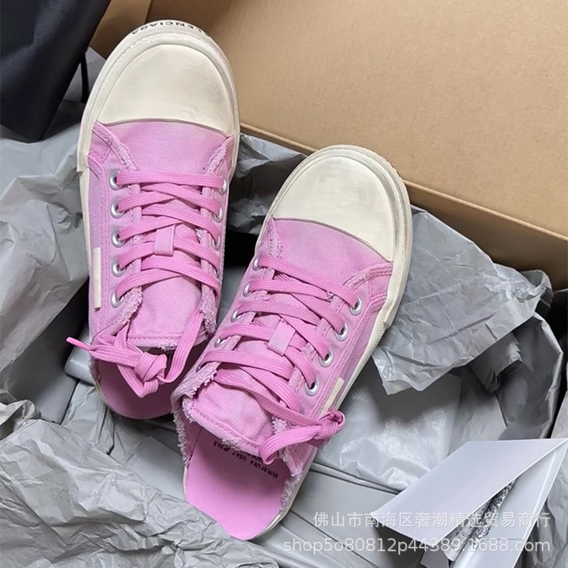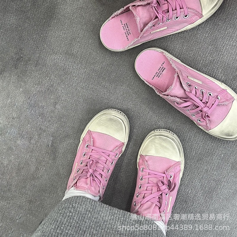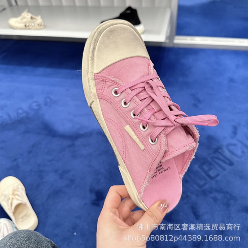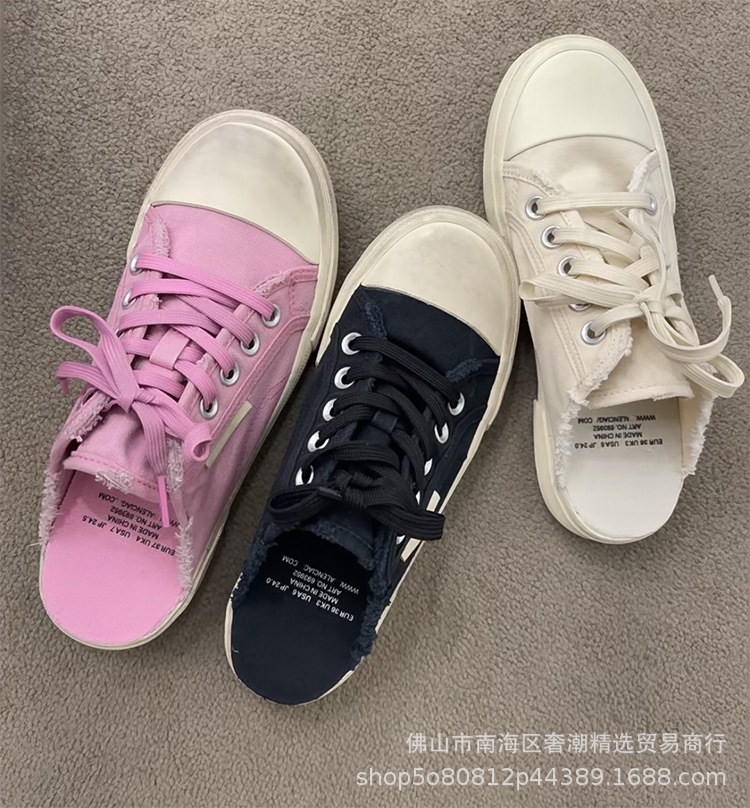 Paris Giày Bẩn Làm Cũ Giày Vải Nữ Mùa Hè Mới Retro Giày Lười Họ Nửa Kéo Giày Bánh Quy Nam Nữ